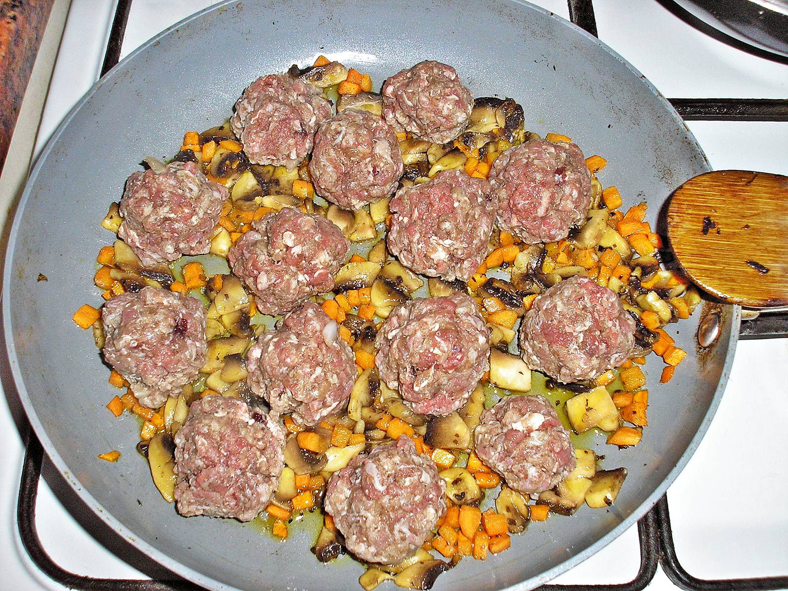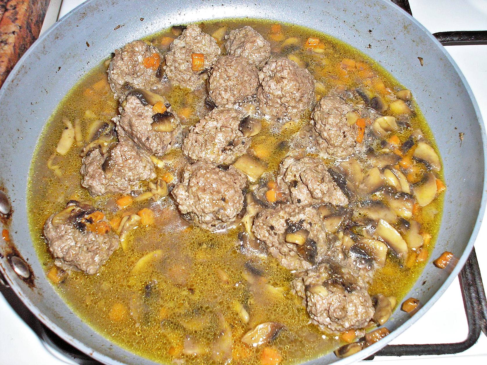 А ни к чему, это банально лук сок пустил. Ждём пока выпарится, да и теперь тефтели осторожно перевернуть можно – они уже не развалятся. Там же ни хлеба ни риса в составе нету, так что они крепкие, типа гамбургера такие: