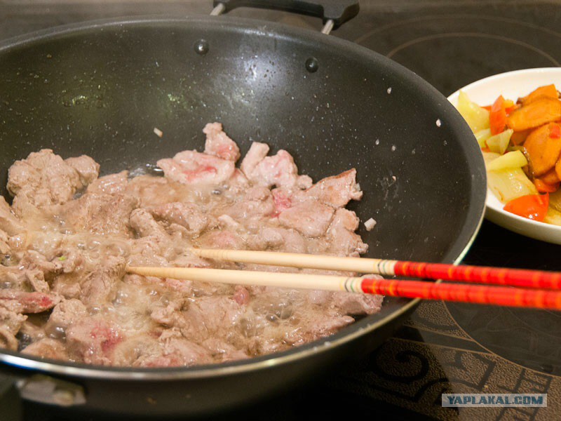 Нет, говорит. Не прокатит вок у тебя на стеклокерамике ну никак. Я там про отдельное блюдо спрашивала. Тут, говорю, парнягу надо одного поздравить, мясо любит и опять же коллега тебе, Костя (в российском миру его так звать). Он мне: