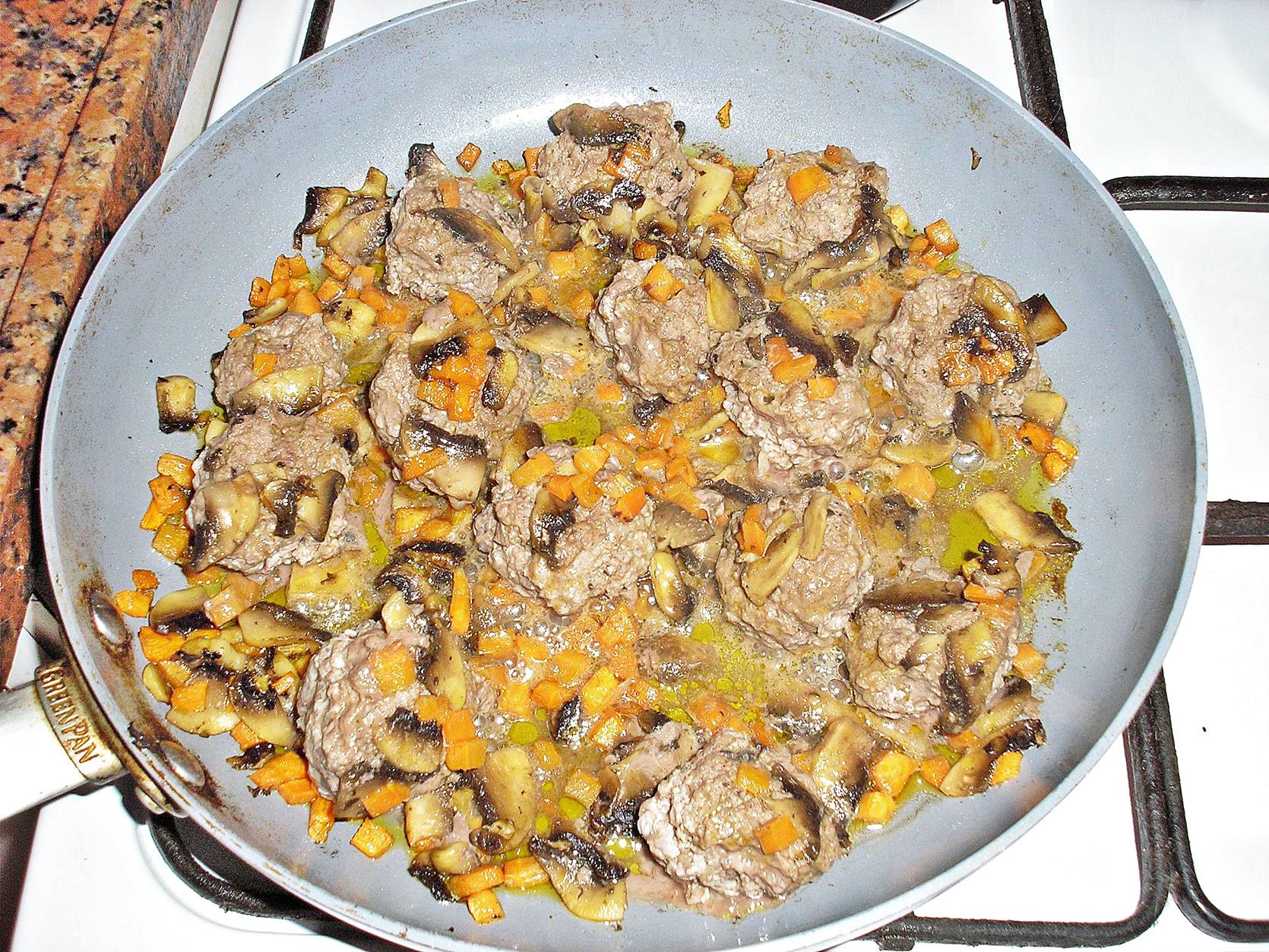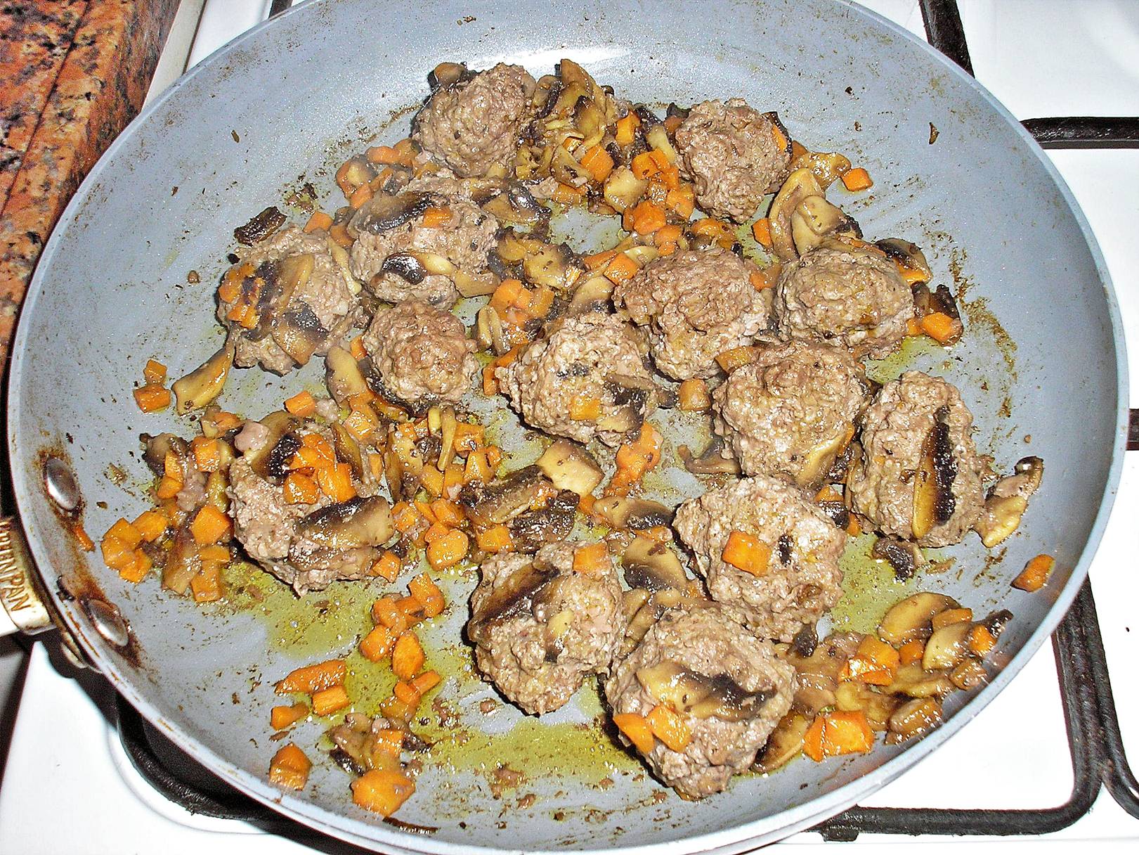 Понятно что всё это время (да посадки тефтелей) овощню на сковороде надо шевелить, и параллельно следить за капустой, ибо она подлая – так и норовить сгореть и всё в жопу испортить! Так что: СЛЕДИТЬ!!!