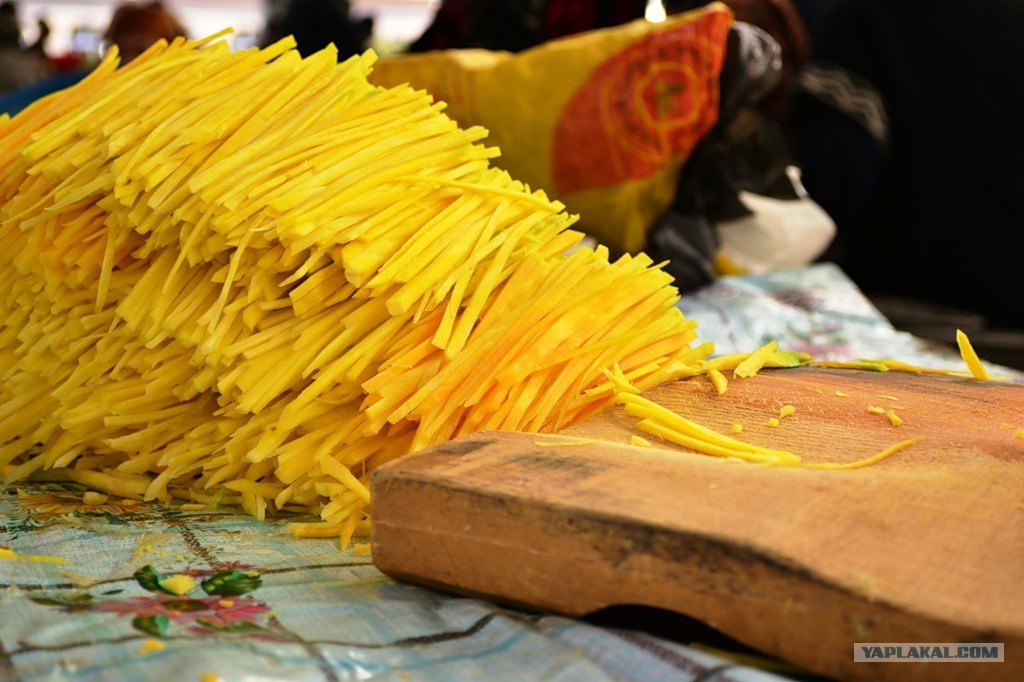 Ты тут про морковь пишешь. Мне например больше нравится с жёлтой морковью. Так по Ташкенту плов готовят в основном из жёлтой моркови.