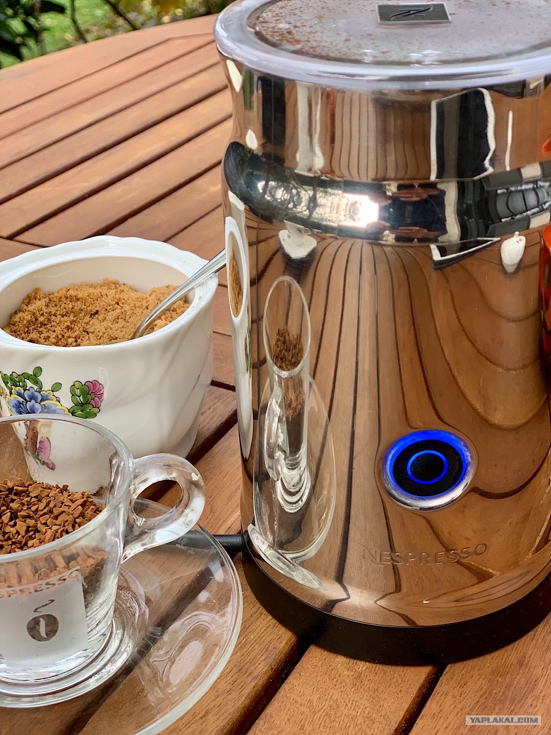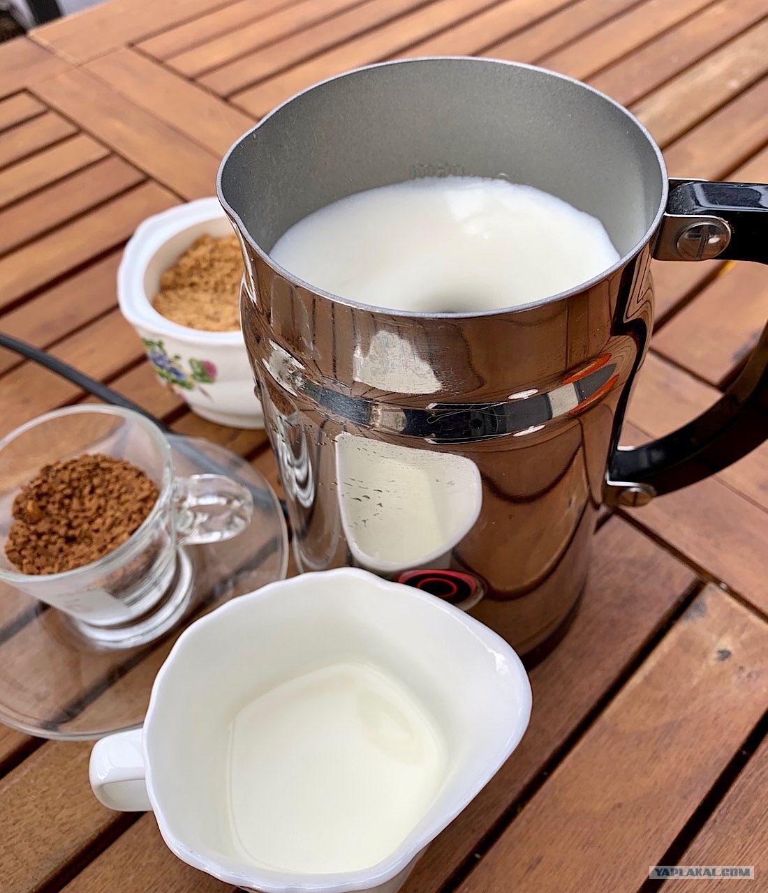 Теперь, хочу добавить пару слов о машинке, которая взбивает молоко в пену. Удобная вещь. Эти молочно-пенные взбивалки периодически то входят в моду, то выходят из неё))))) Понятно почему. Нам надоедает (приедается) одно и хочется другого. Например, простого кофе,но с пышной молочной пеной. Почему нет?