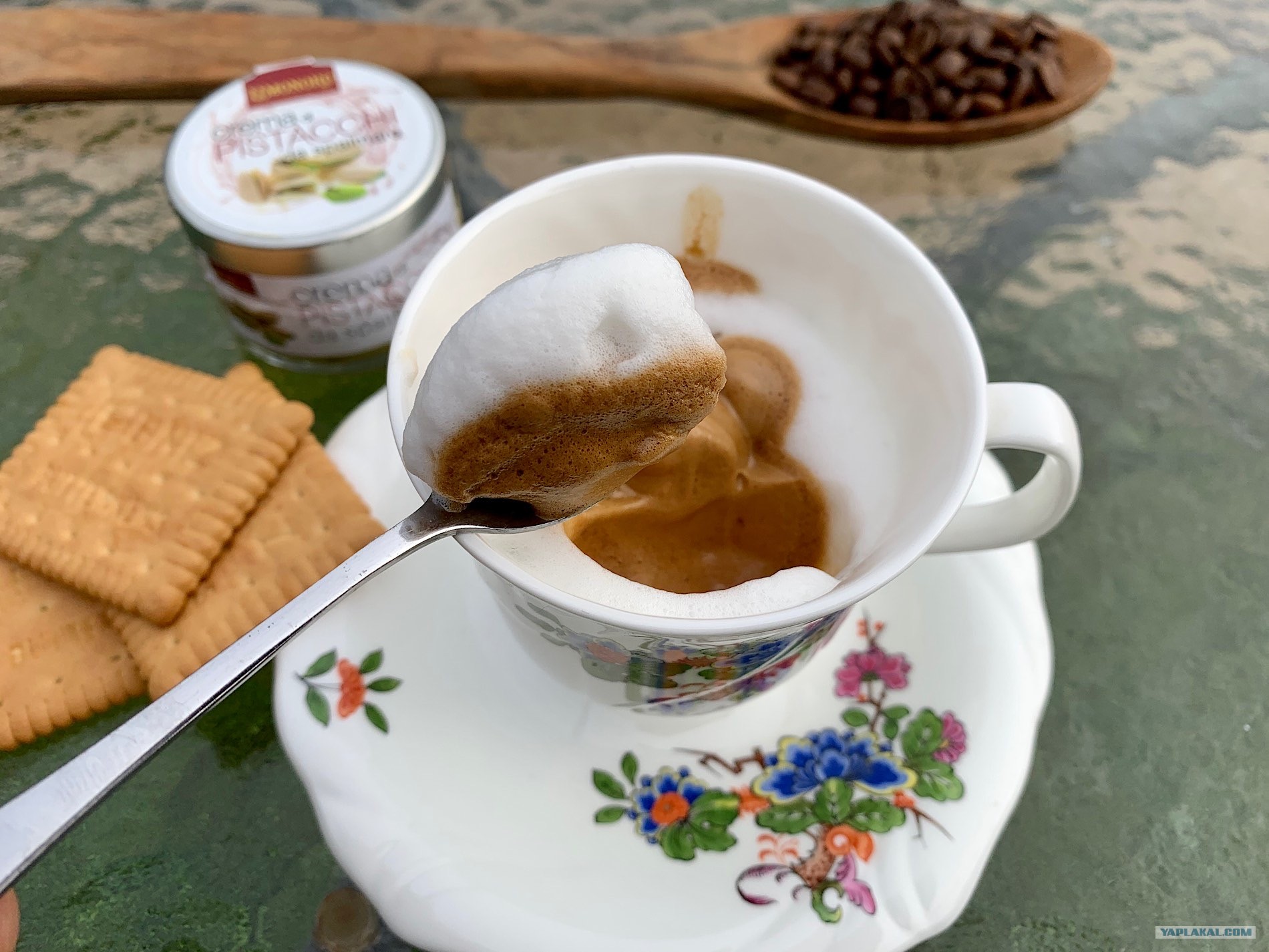 Обычный френч-пресс любой плотности пенку сделает за несколько секунд. Универсальная вещь. Хочешь заварку листовую завари, хочешь кофе, а к латте и капучино еще и молочную пенку. А вот интересно дальгону взобьет он или как? Кофе растворимого дома нет и покупать его смысла не вижу. Дальгону пила в своей юности. Очень вкусный напиток.