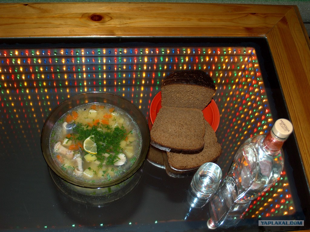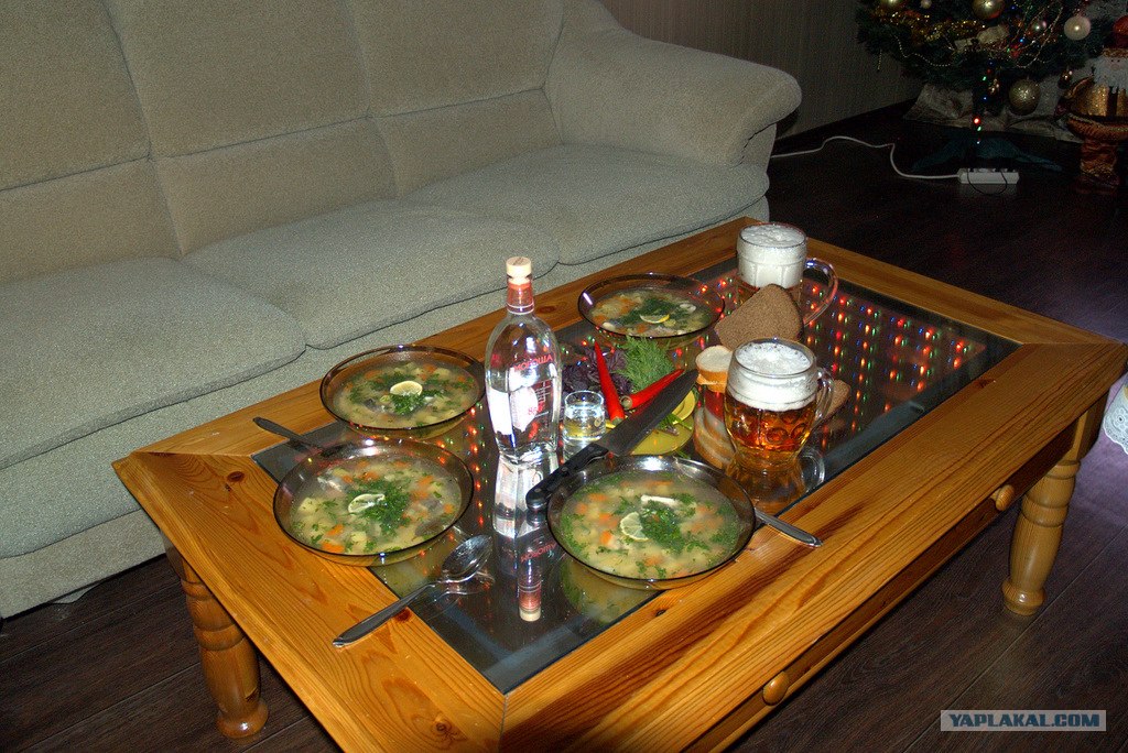 Упс! Просто параллельно с ухой готовилась утка, и изготавливался стол-портал-световой туннель. Спасибо ЯПу за вдохновение.