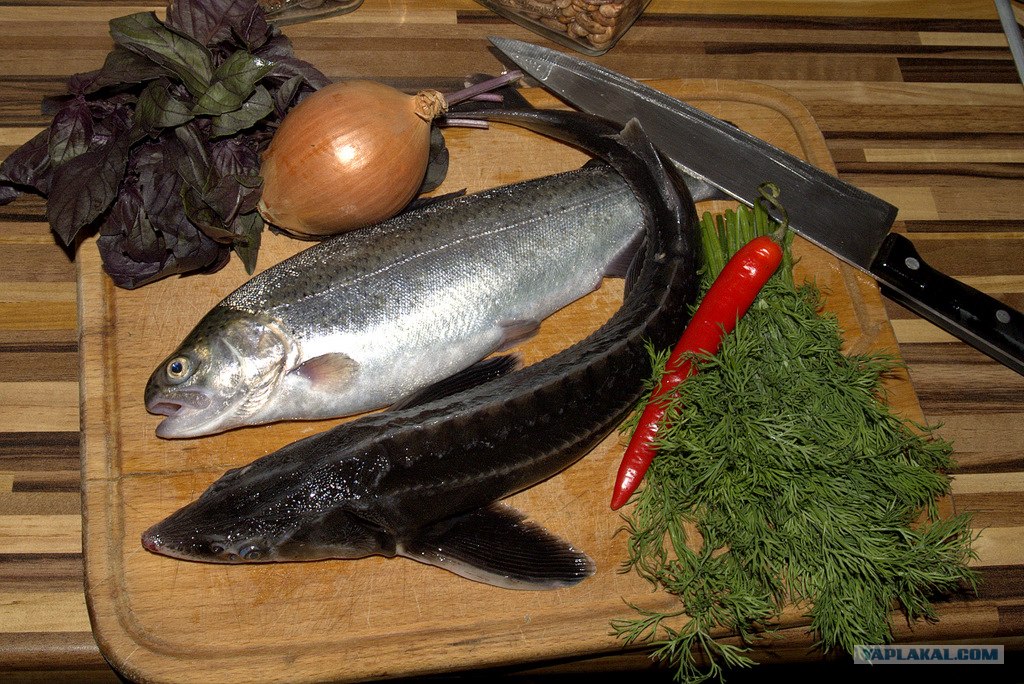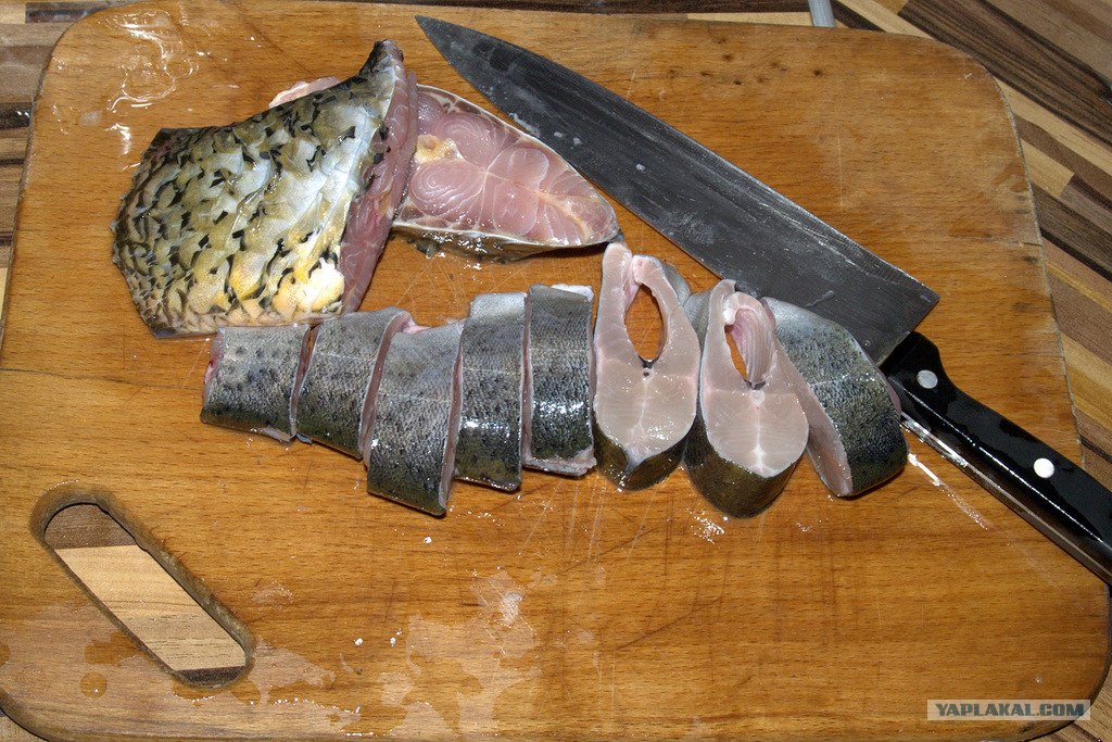 После казни стерляди и форели, достаем из морозилки жертвы предыдущих репрессий.