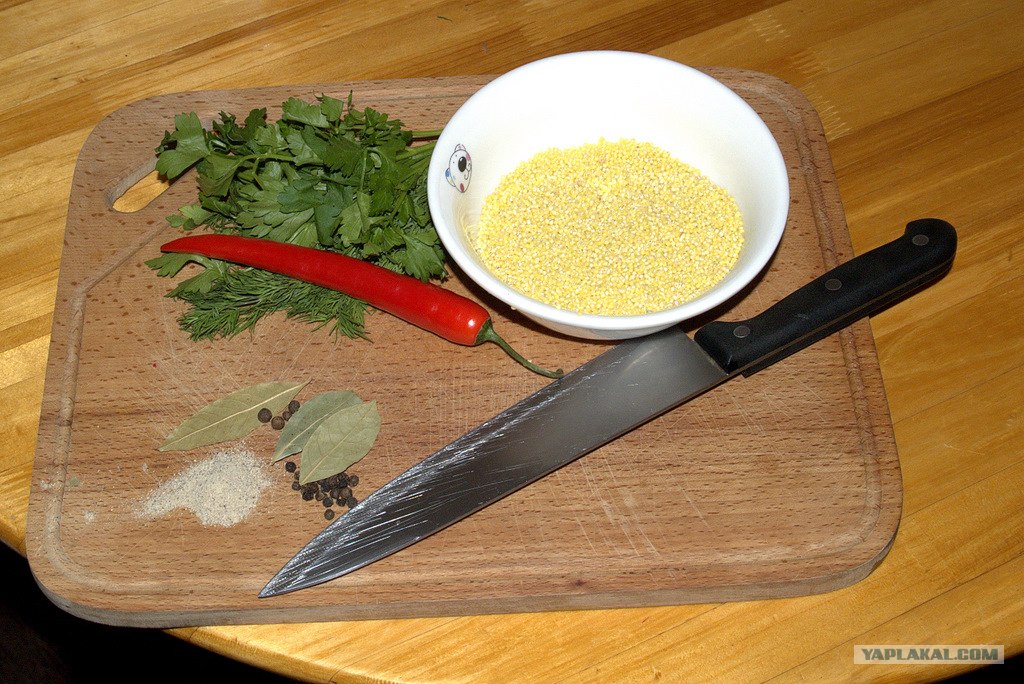 И конечно же специи. Фишка нашего рецепта в пшене. С пшеном не переборщите не переухите. dont.gif