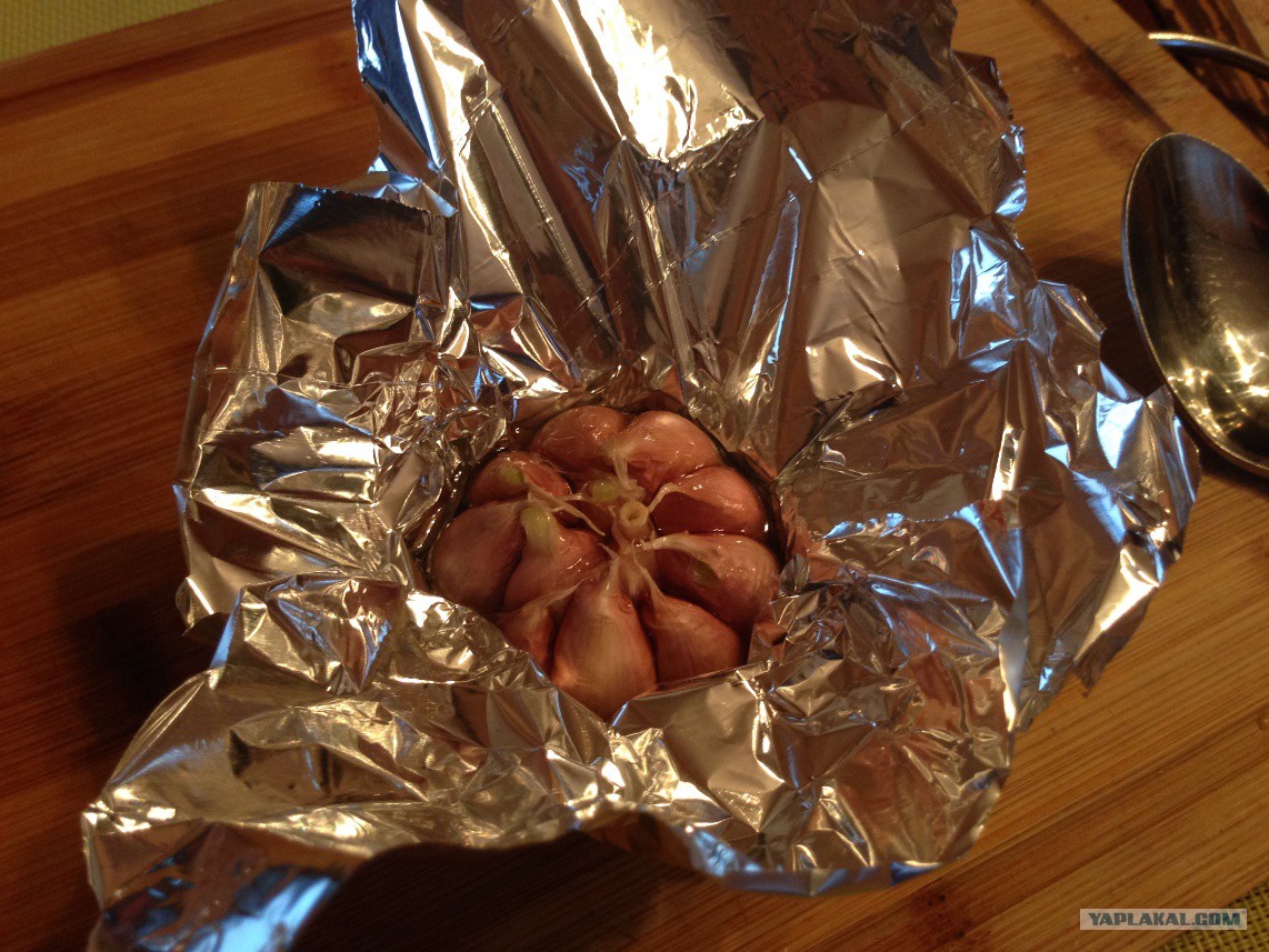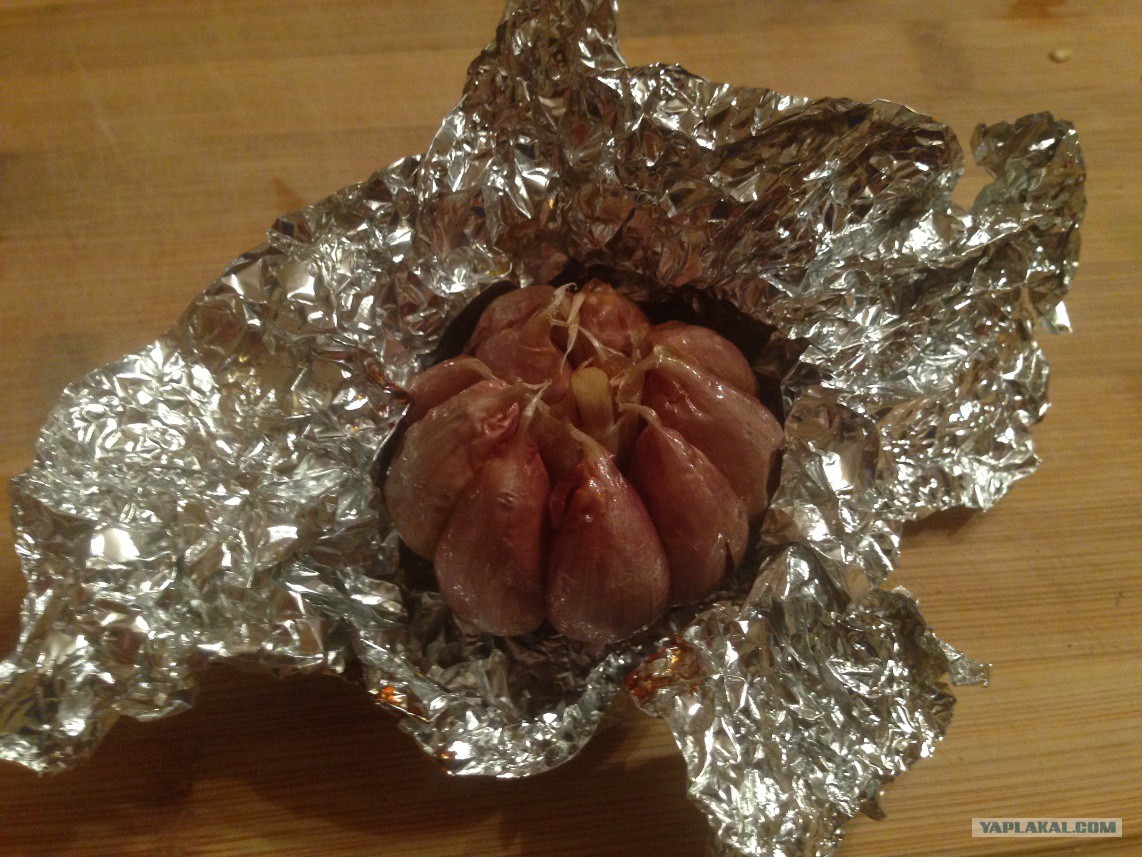 К этому моменту должен подоспеть чесночек. Вскрывать его нужно аккуратно, т.к. запах будет настолько волшебным, что в окно может прилететь сова, а в дверь постучаться огромный двухметровый косматый преподаватель ухода за магическими существами.