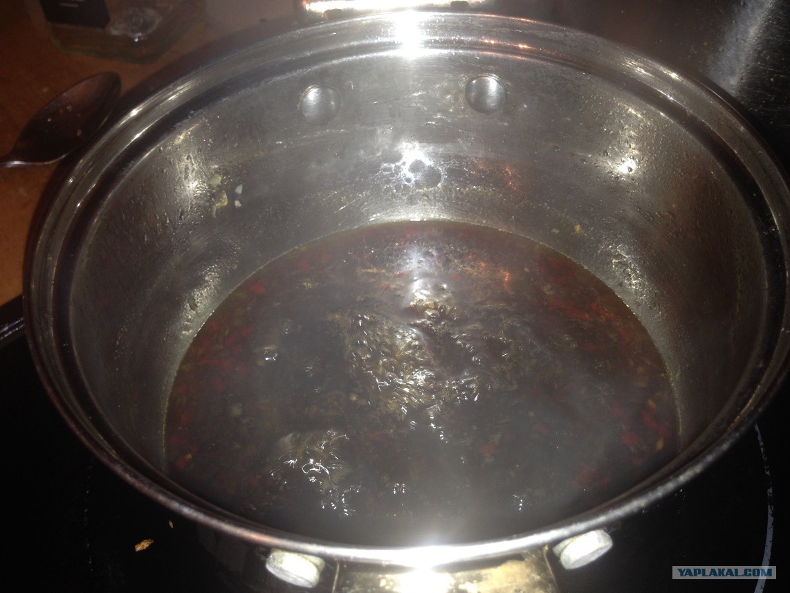 Но тоже вопрос нафига добавлять воду, чтоб ее потом мужественно выпаривать (а за такое время и другие ароматы уходить будут) - возникает. И да, ЯП процедил.