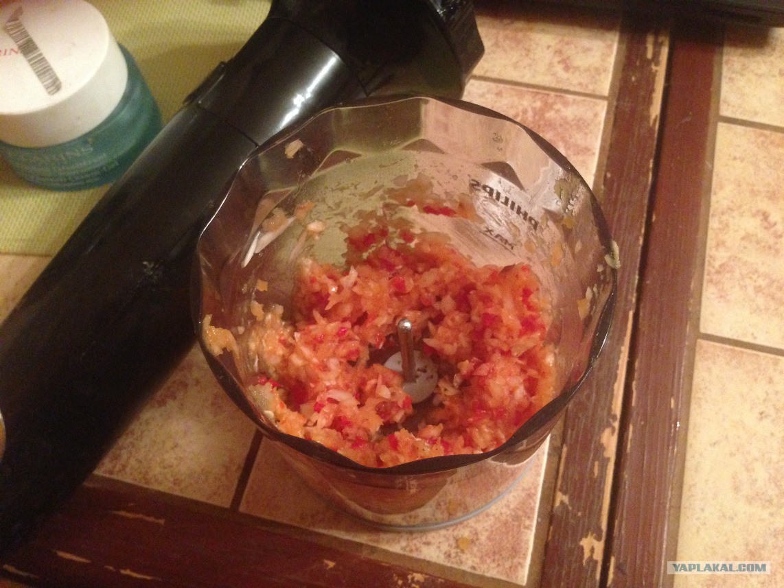 Теперь вышеуказанные ингредиенты необходимо измельчить и смешать. Мне удобней для этого использовать блендер, но можно и вручную, главное помельче.