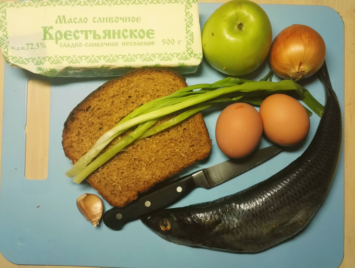 3. Пока варятся яйца, чистим селедку, лук, яблоко,