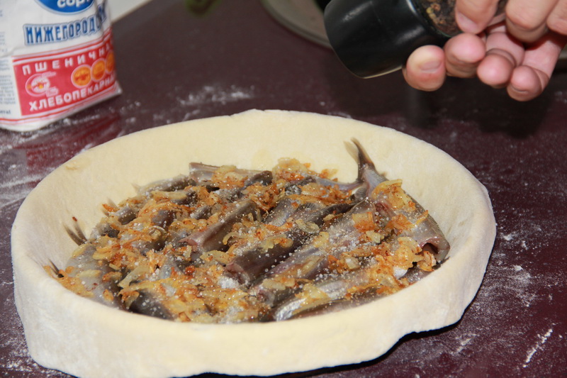 Основные составляющие: мойва 1 кг, мука 1 кг, 1 пакетик быстродрожжей, стакан молока, крупная луковица, 100 гр. сливочного масла.