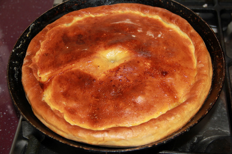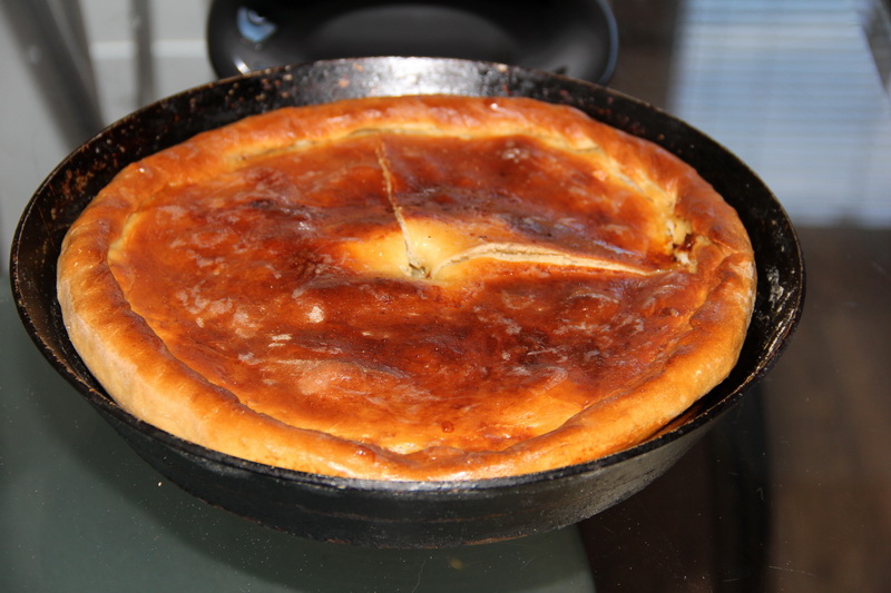 Отправляем пирог в разогретую духовку примерно на час. За это время он успевает, и пропечься и «загореть». Вынимаем пирог, накрываем салфеткой и минут 20 терпеливо ждём пока остынет. umnik.gif