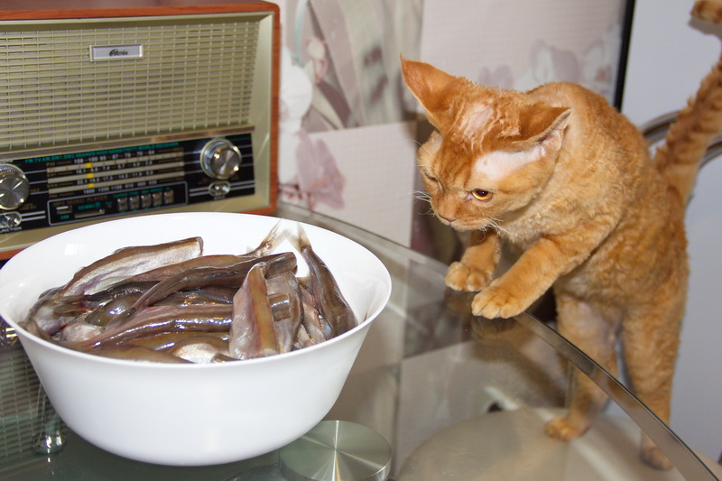 Тут внезапно появился контролёр ОТК пожелавший проверить качество очистки рыбки. Пришлось убрать мойву в холодильник, чтобы лишний раз не нервировать нашего контролёра. gigi.gif