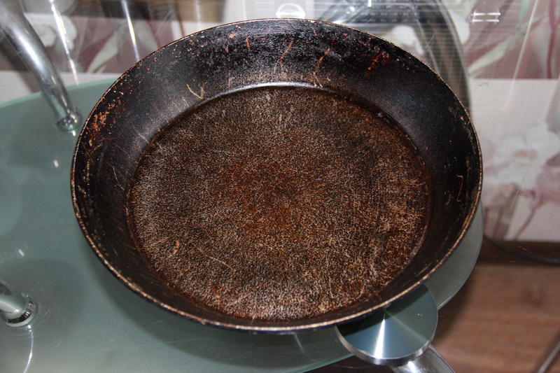 Пора приступать к сборке пирога. Для подобного типа пирогов я использую старенькую сковороду, она на вид хоть и неказистая, но рыбные пироги или курники в ней получаются великолепно.