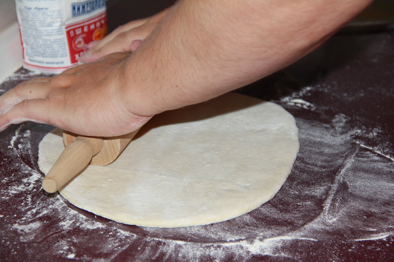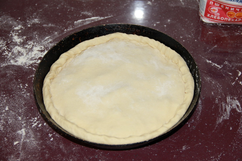 Раскатываем 2 блина теста, один побольше на основу и второй поменьше на покрытие. Толщина раскатываемого блина зависит от личных предпочтений, кому-то нравится тесто в пироге потолще, а кому-то потоньше. Я раскатываю довольно тонкие пласты.