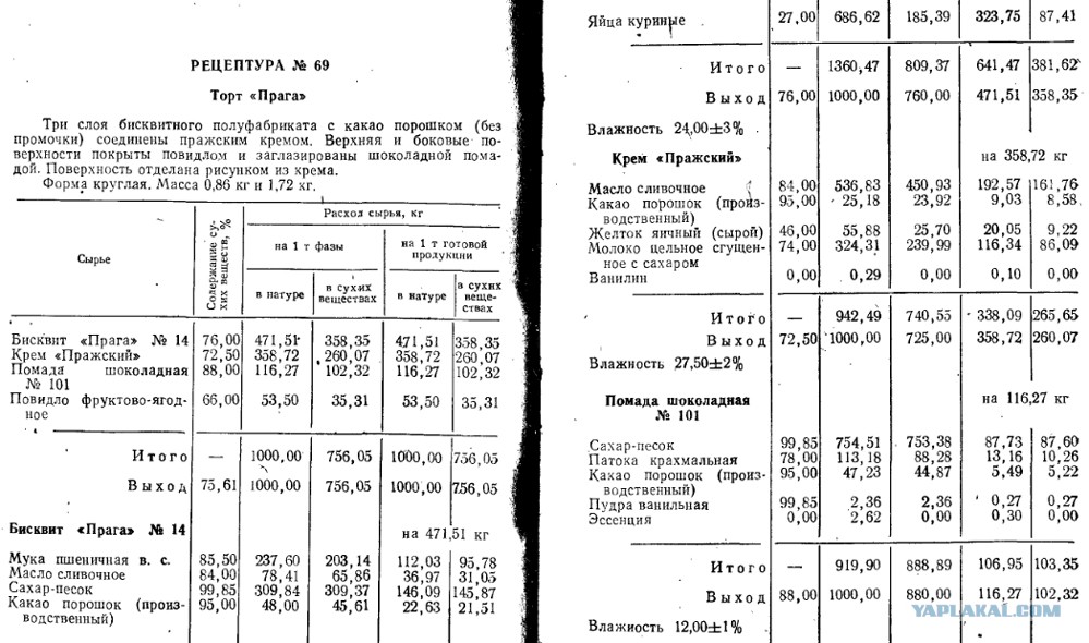 Для начала возьмем рецептуру и посмотрим, как и из чего он состоит. Я ее взял из первого тома сборника рецептур «Рецептуры на торты, пирожные, кексы и рулеты 1978г», если кому интересно, то ее можно скачать и полностью почитать smile.gif Рецепт там под номером 69 на странице 290.