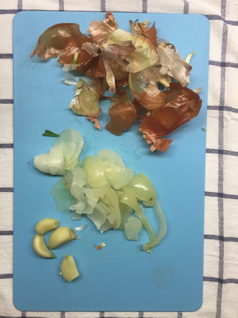 Когда дошло до кондиции, что определяется на ощупь, то я это почистил и крупно порезал. Нарезка чеснока, к сожалению, в кадр не попала. Фото на телефон и по каким-то причинам получился сильный расфокус.