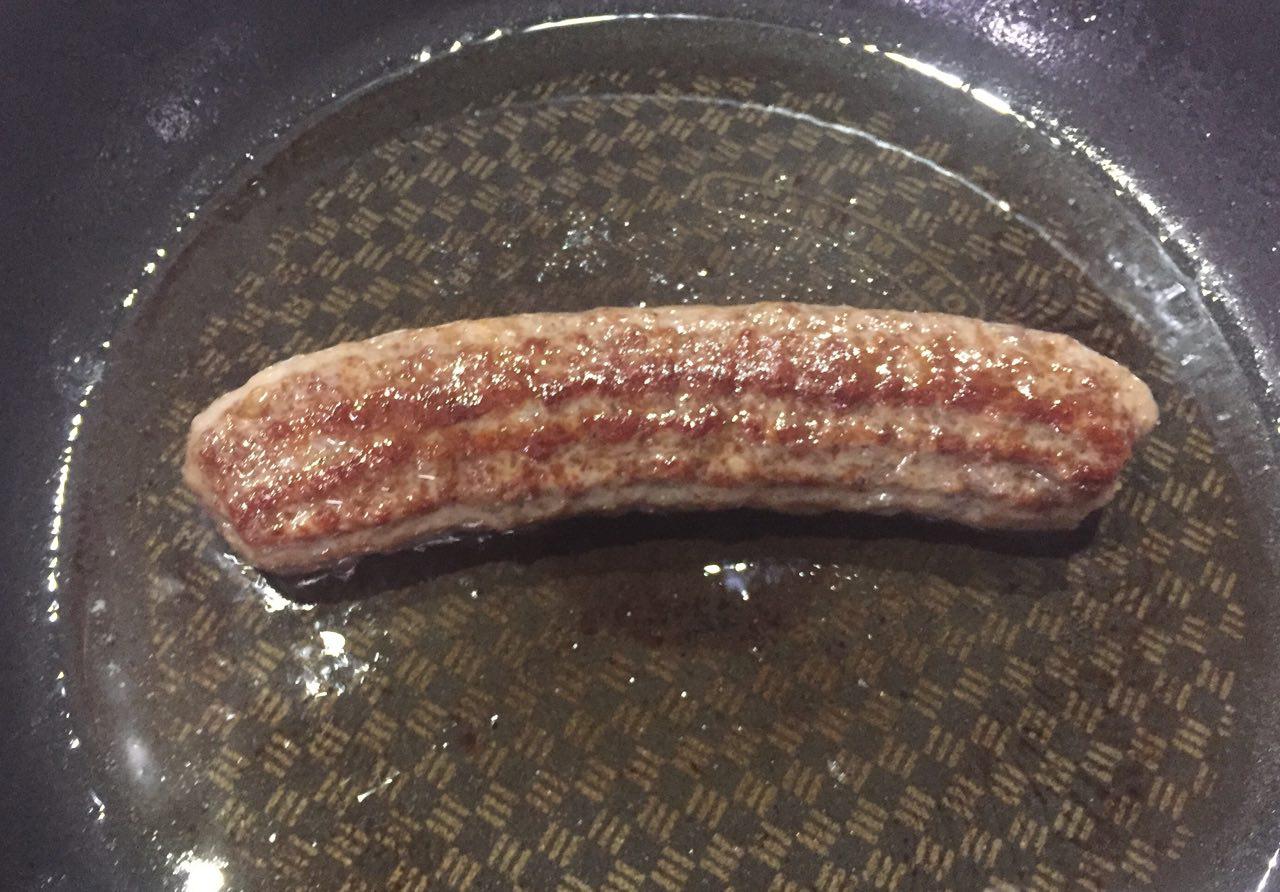Затем из холодильника извлекли колбасный продукт от Мираторга. Выбор на мраморную говядину пал не случайно. Данные колбаски без оболочки, но при этом содержат в себе присущие для колбасных изделий добавки и специи. На вид конечно фарш, но на вкус это не котлета. Очень сочные.