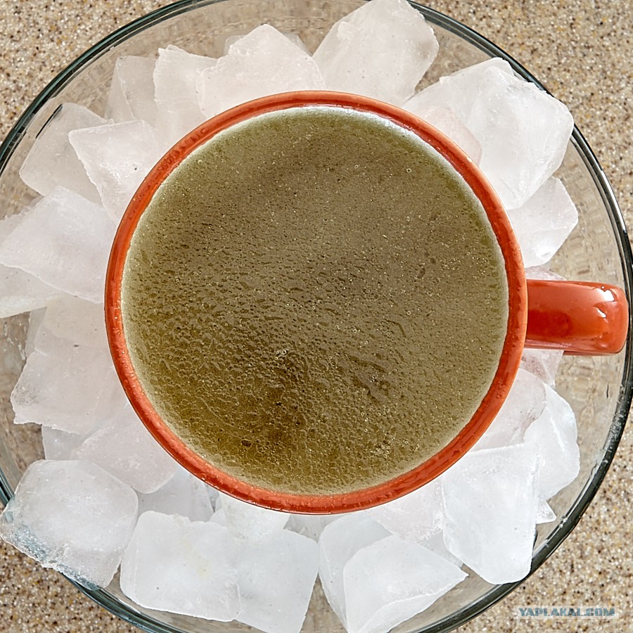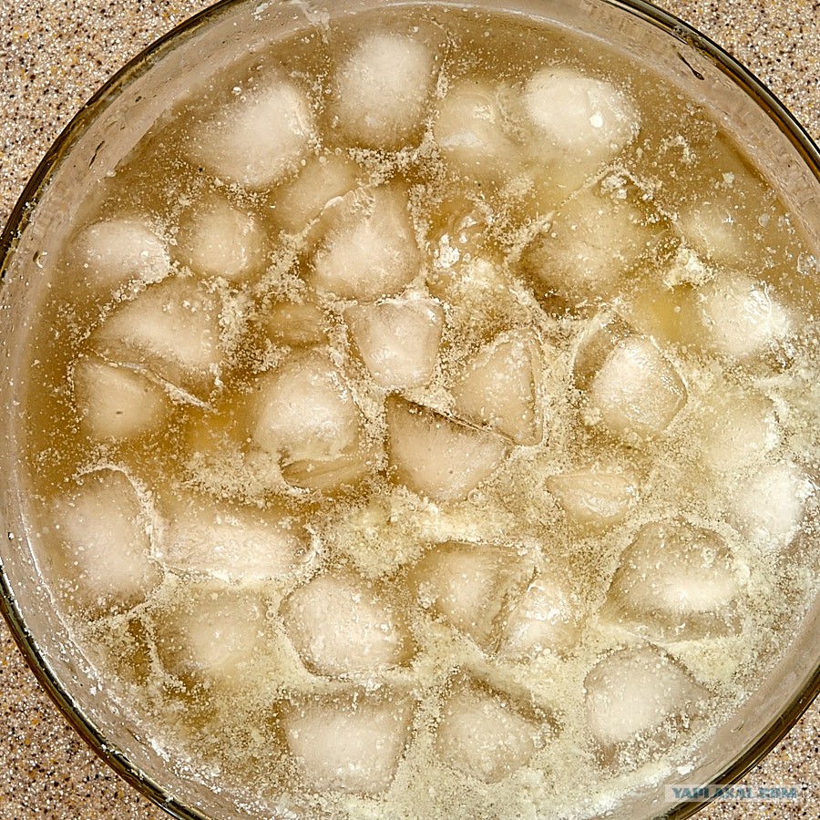 В процессе остывания жир убирал чайной ложкой прямо на лёд. После достал другой лёд, который был температурой примерно -25...-20C, в который вылил бульон.