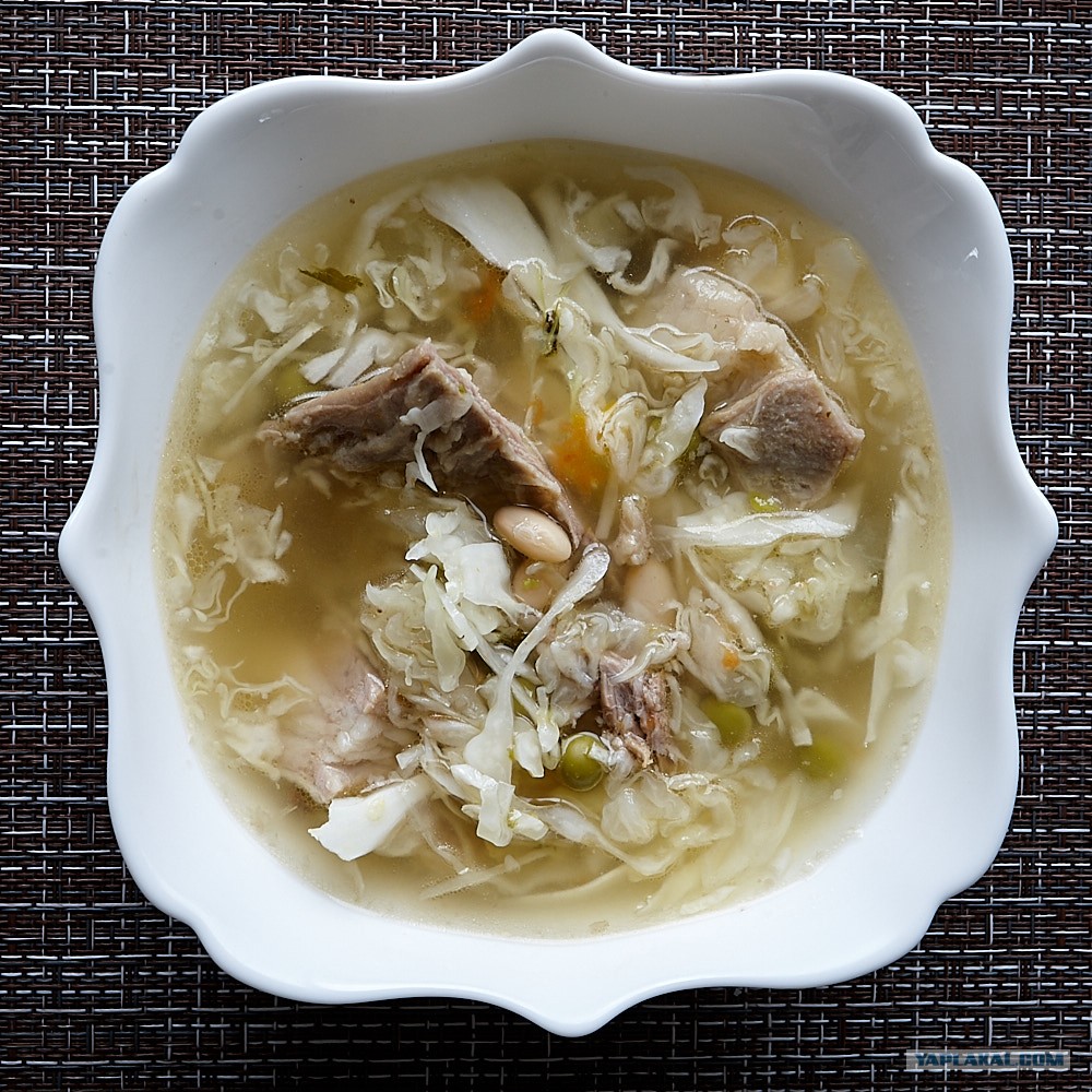 Щи с молодой капустой и консервированным горошком