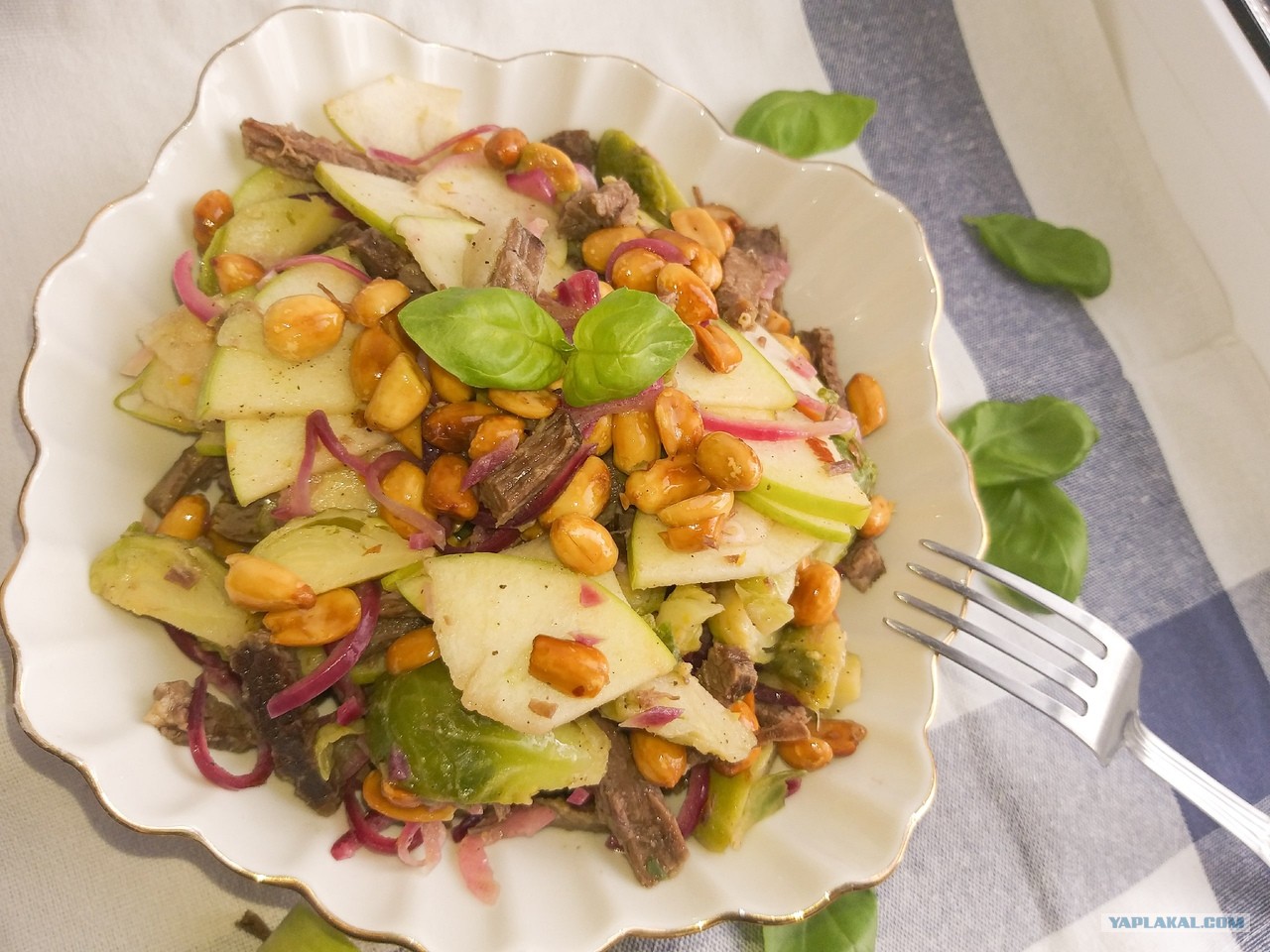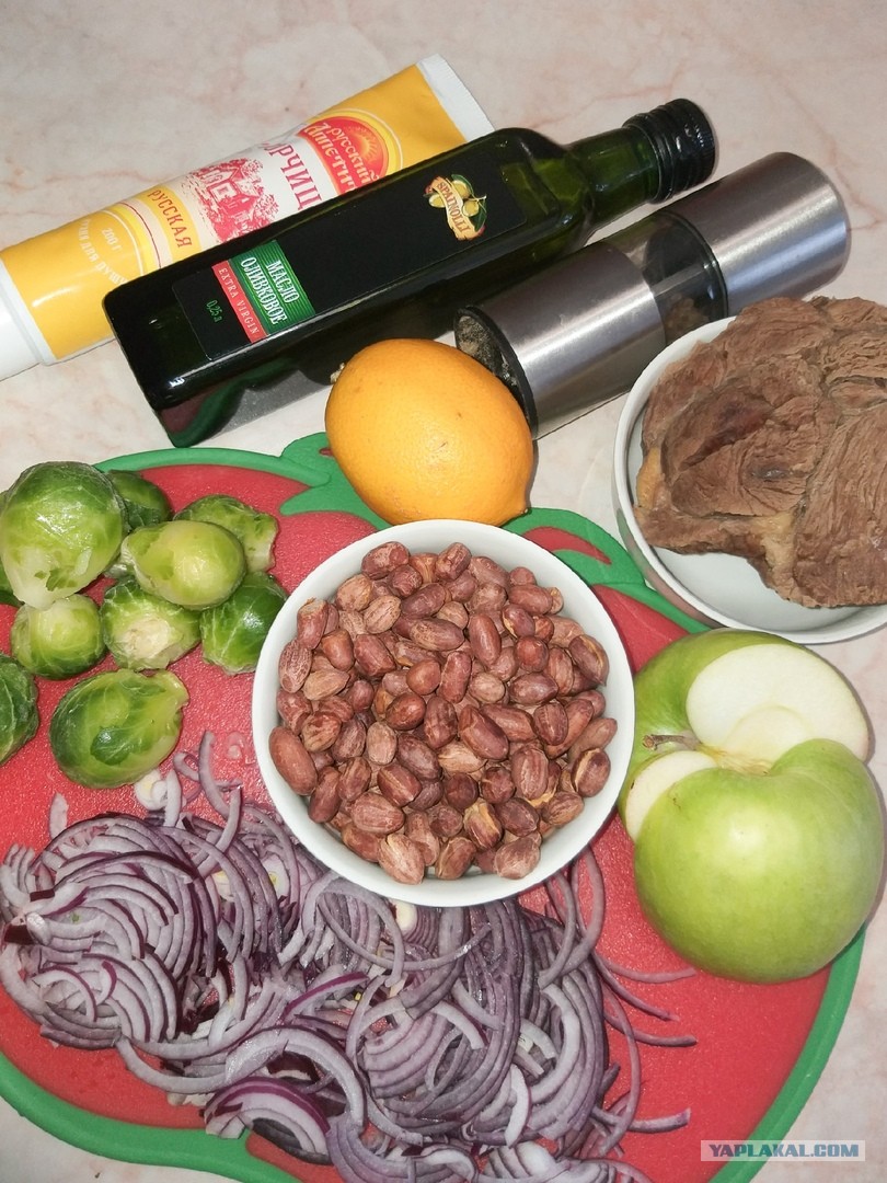 Давайте поговорим о приятном!Салат с брюссельской капустой, арахисом под горчичной заправкой