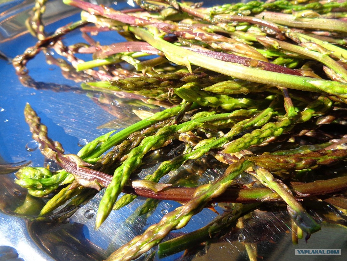 Как всегда я совместила приятное с полезным и набрала дикой спаржи, которую мы очень любим.