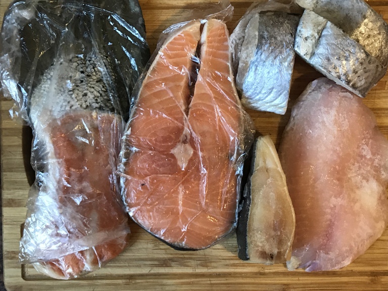 Для начала нужна рыба. В принципе, подходит та, на которую есть деньги. Это ещё один плюс данного блюда. Морская — конечно, лучше, но и речная тоже должна сойти. Хотя там многовато костей и вообще, если есть рыбный набор, то это будет идеальным выбором. У меня набор "что нашлось в морозилке". Выглядит так: