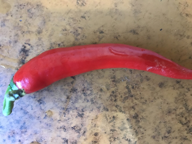 Перец острый красный "кавказский". Совет: подумайте, прежде чем добавлять. Я-то его ем спокойно вприкуску, но не уверен, что вы поступаете так же.