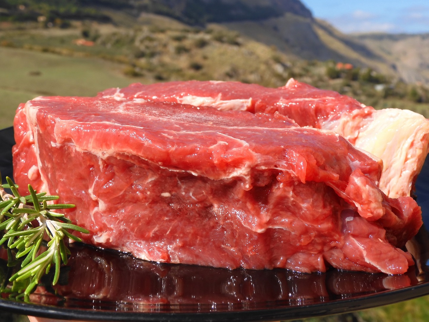 В оригинале, вроде бы, это мясо на кости, в гугле — всякое, даже эскалоп, у меня, как водится — околофилейная часть молодой тёлочки вольного выгула.