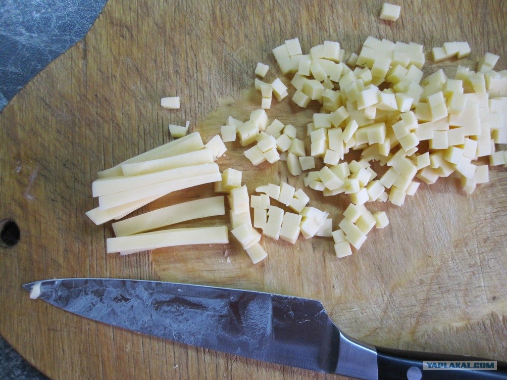 Да тут наверное не особо критично какой сыр, главное что бы не твердый, что бы подплавился в микроволновке легко. Ну и я бы сыр кубиками бы не резал, а на крупной терке потер бы. Но это так, личные предпочтения : )