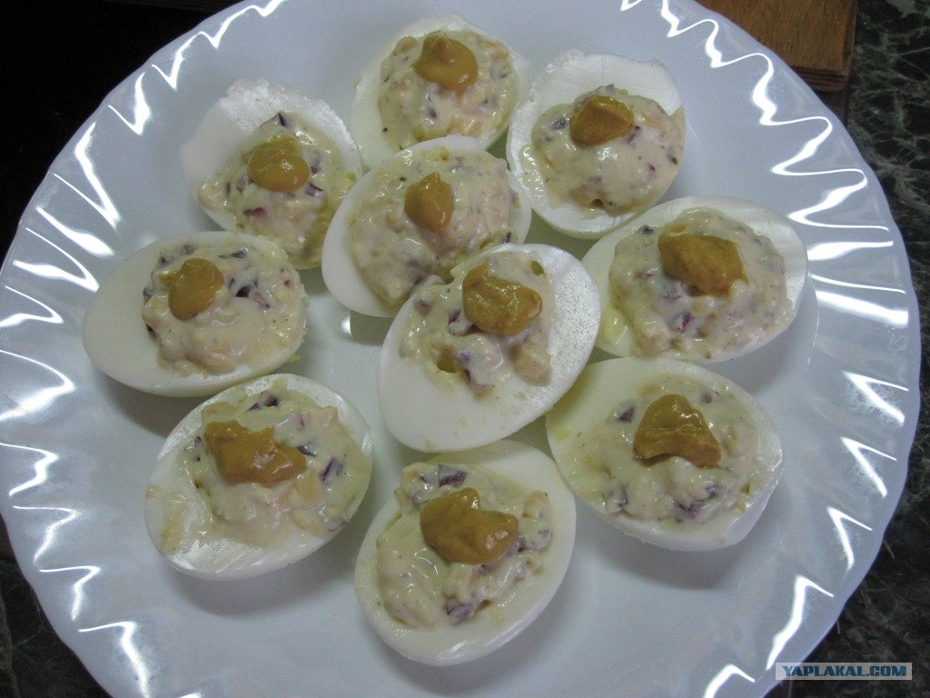 А если резать не пополам, а срезать жопку и фарш заправить не чесночным соусом а майонезом и добавить помидорку - то получатся детские мухоморы smile.gif