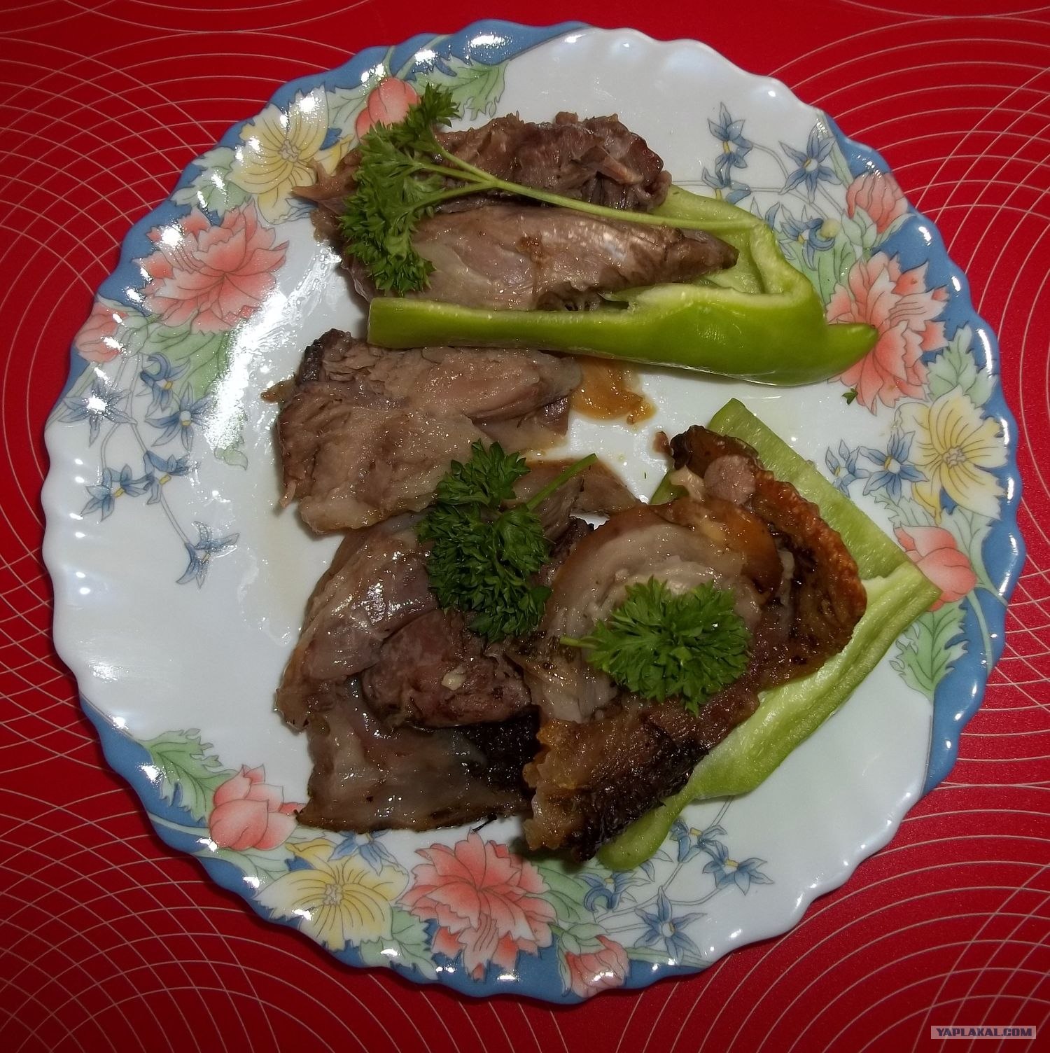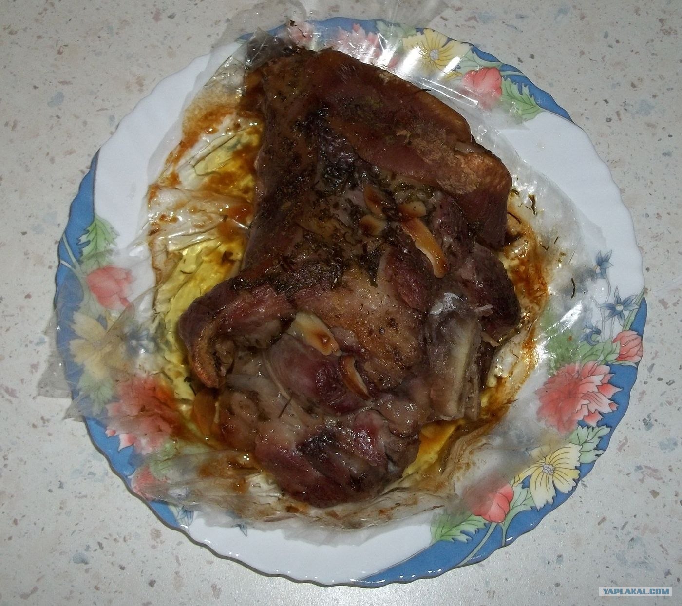 Вот достал, пленку немного срезал. Мясо в руках разваливается, от костей отстало, во рту тает. Сам не ожидал.