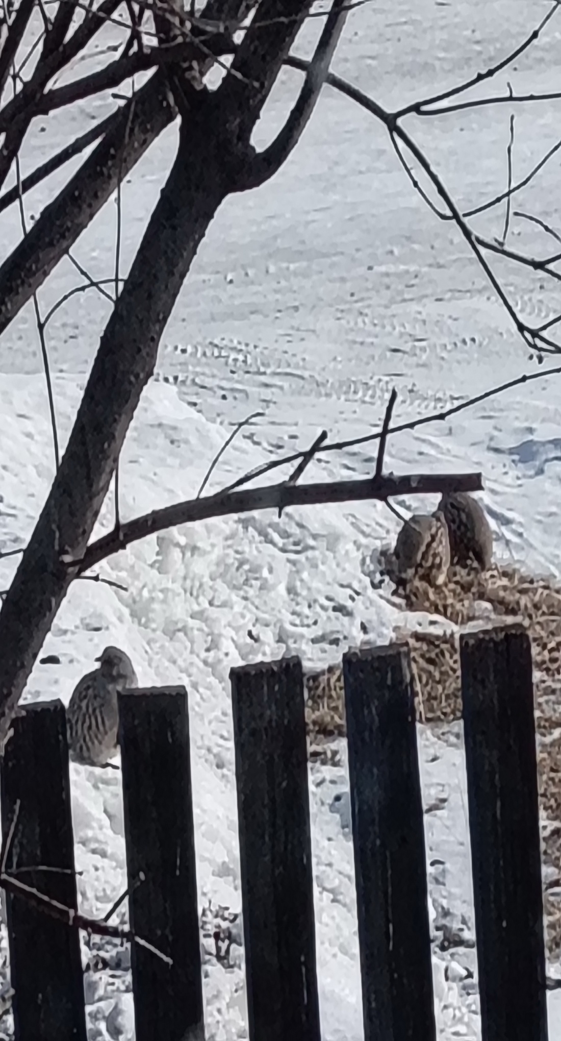 А у меня сегодня в деревне гости с утра))) Куропаток выводок прямо у ограды на проталине что-то искали. Машины по улице проходят - сидят, не улетают! Но стоило чуть активней мне в окне шевельнуться - фррр - улетели...