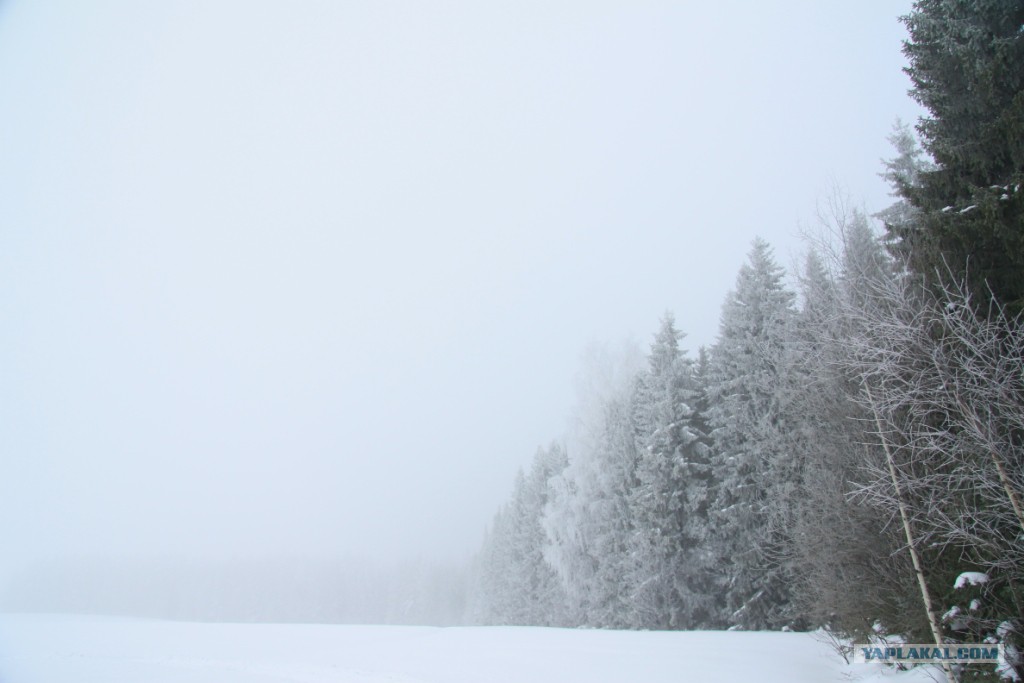 Можно, я проиллюстрирую фотографией, вот прям только что сделанной. Видимость нулевая. Через призму зимних суровых серых туч, ползущих по земле. Хотели еще прифотошопить кого-нибудь на веточке: