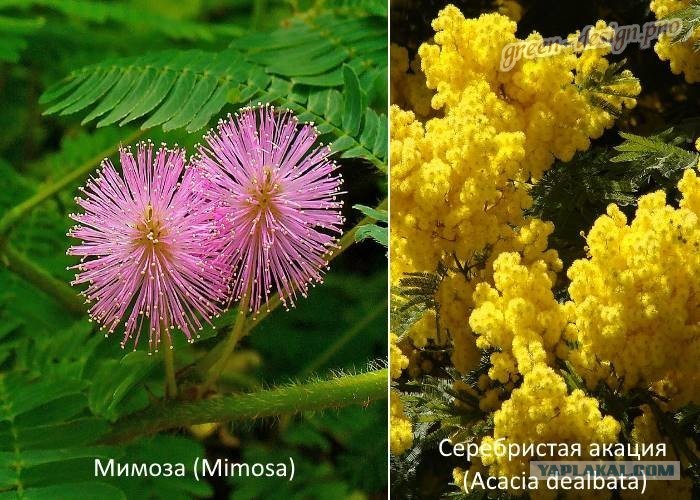А фото, демонстрирующее разницу между мимозой и вышеупомянутой акацией, я приаттачиваю.