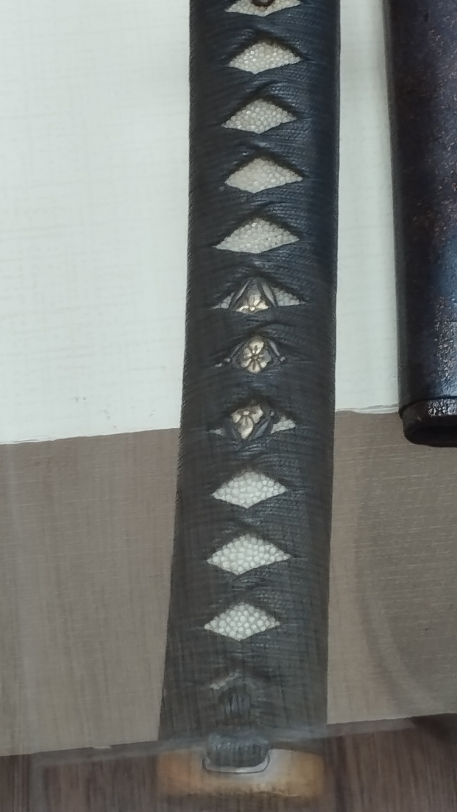 Рукоятка. Под лентой видна кожа ската и трилистник Токугава.