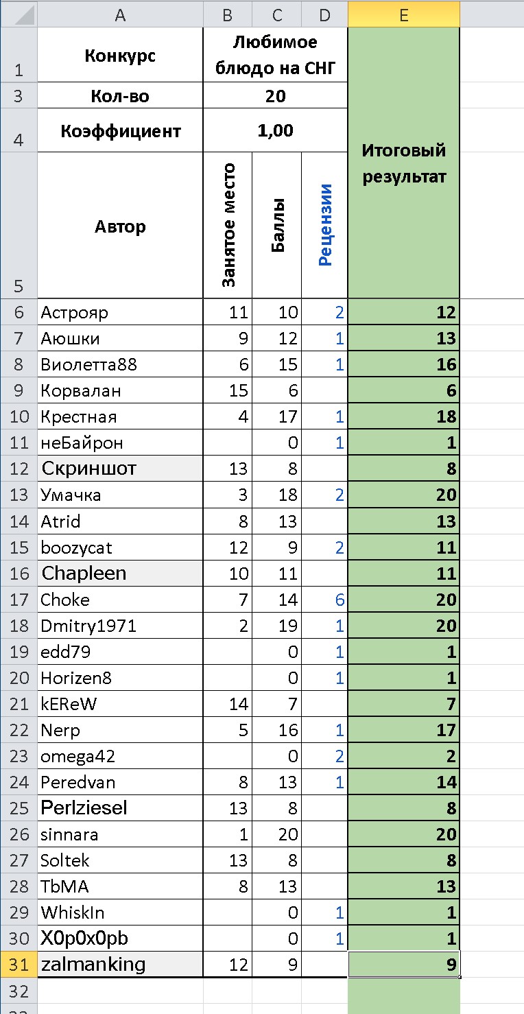 Дополню итоги табличкой активности: