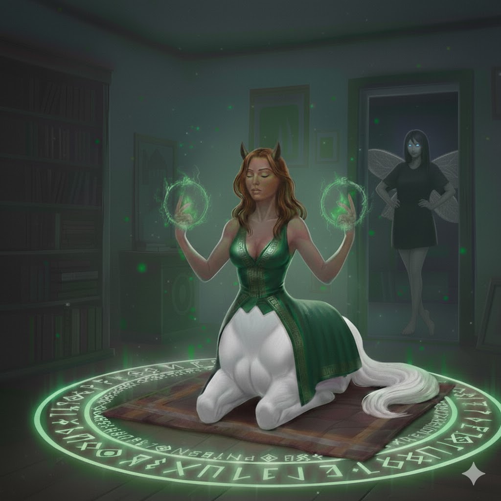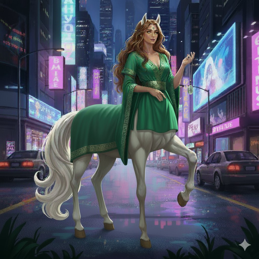 Я привычно, на автопилоте, пролетала по своему обычному маршруту, прогуливаясь по набережной Леи, пролетая от причала у дома, где я снимаю квартиру, до маяка, что стоял в самом начале Центра. Там, где наш остров делил реку на два рукава. Так и долетела до моста, что соединял наш остров с берегом, пересекая Лею высокой аркой. Я полетела над мостом, когда кто-то громко ахнул рядом со мной, словно увидел что-то страшно ужасное. Вскинувшись, я посмотрела перед собой, выискивая возможную опасность, и обнаружила впереди белоснежную кентавру в зелёном платье-попоне. По подолу и рукавам его был вышит их знаменитый узор, золотой лентой изгибающийся под прямыми углами. Выглядел он довольно просто, но очень стильно. Правда, мне такое точно не пойдёт. Да я и сама больше предпочитаю чёрные оттенки и более современный стиль. Да и сама кентавра, на мой взгляд, довольно симпатичная, молодая кобылка белой масти, с каштановыми волосами на голове.