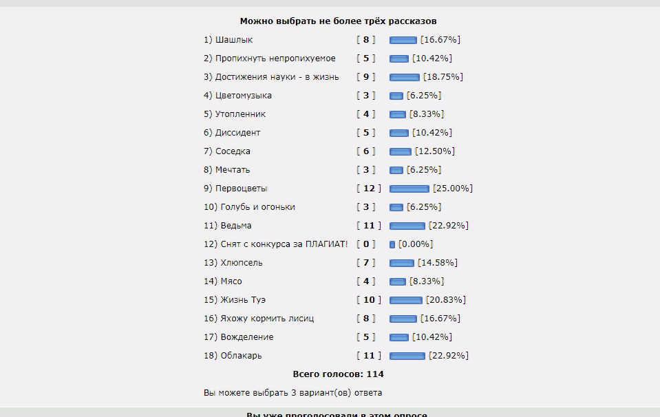 12) Снят с конкурса за ПЛАГИАТ! [ 0 ]  [0.00%]