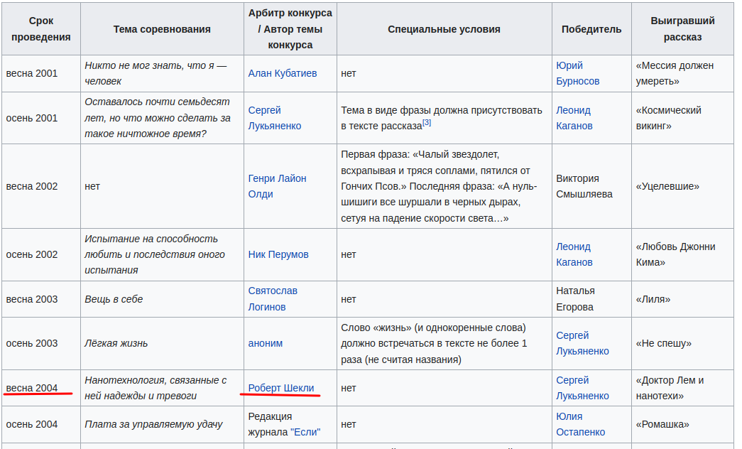 Это очень странно слышать, потому что тот самый Шекли скончался в 2005 году. [/QUOTE]