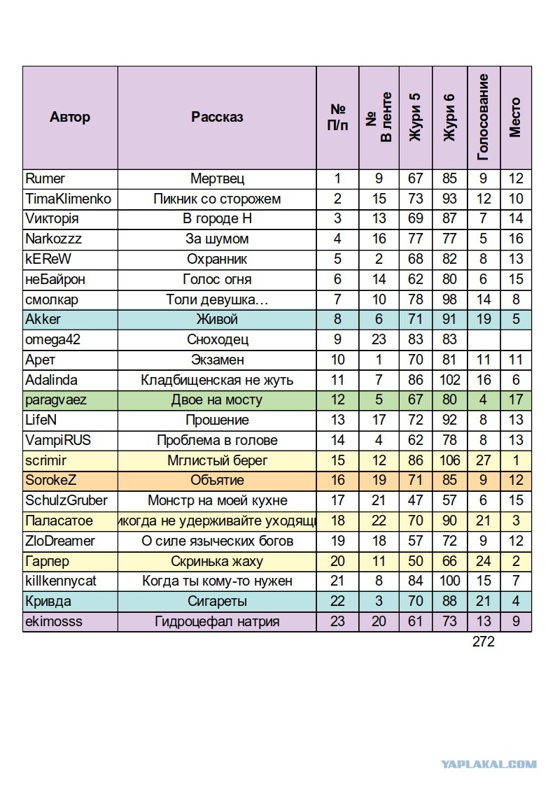 PS. За Слог и Грамотность почти всем выставлял высокие оценки. Я не оголтелый граммар-наци. Но писать грамотно надо уметь. Приоритет имели позиции "Соответствие темы" и "Сюжет".