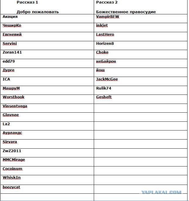 Список авторов, приславших шедевры на конкурс: