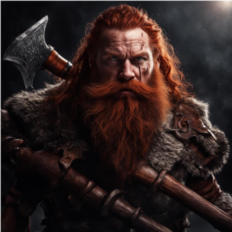 Гном подошел, поставил секиру на землю и уперся руками в рукоять.