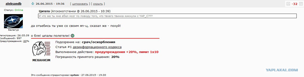 Просто ты недостаточно почтительно отнесся к Великому ЯП-Цэ и понесешь наказание за это. Во славу Великого ЯП-Цэ!!!