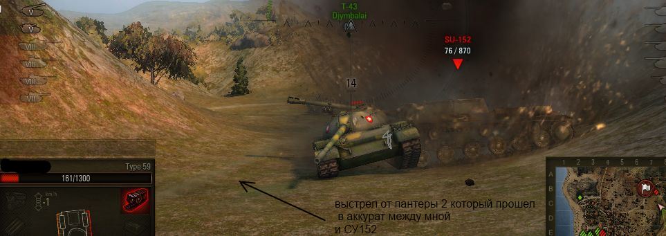 ну значит начинаем разбирать её потихому и вдруг откуда не возьмись явилось нам чудо под названием СУ152. Оно так нахально выкатилось на мой типчик 59 и еще устрашающе пукнула в гуслю, пред тем как прижаться ко мне поближе. Мои бедные китайчеки чуть ли не стали пачками делать красный строительный материал прямоугольной формы.