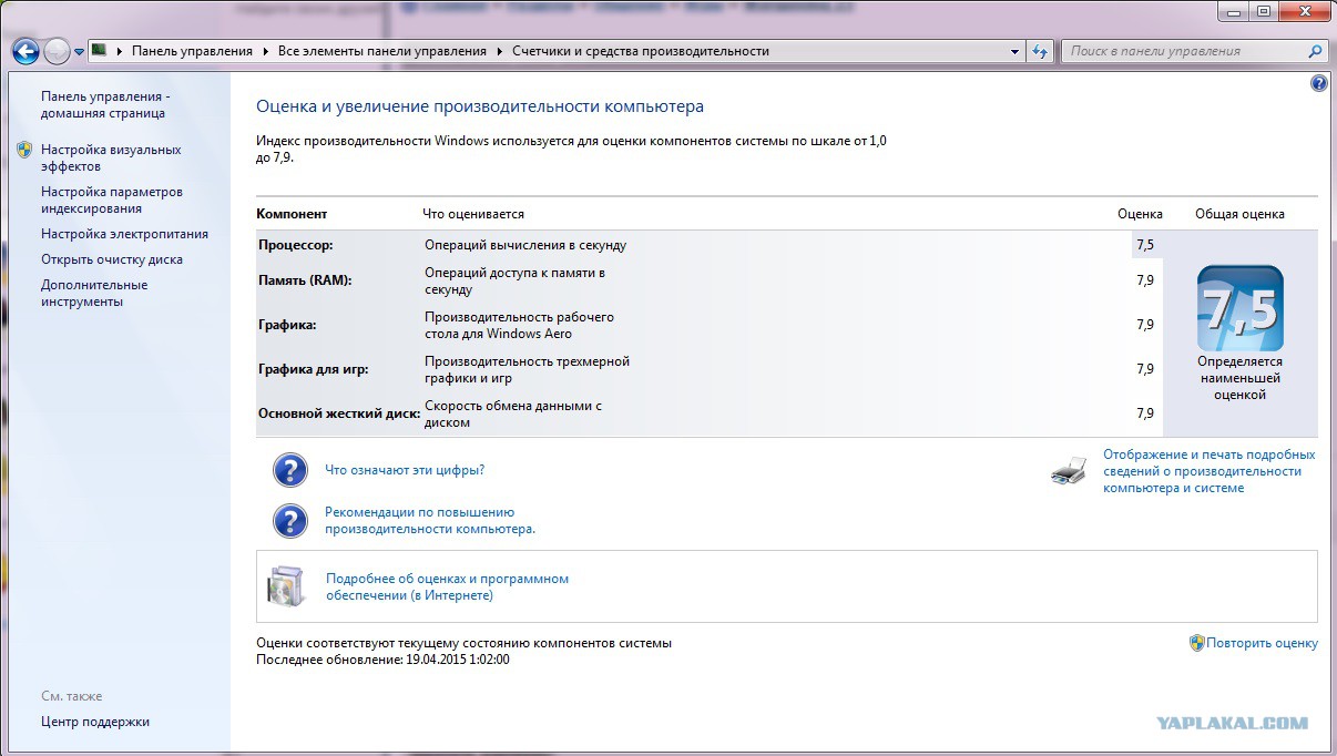 Я так понимаю винт у вас SSD, потому как у меня тоже оценка 7,9 скорости обмена данными.