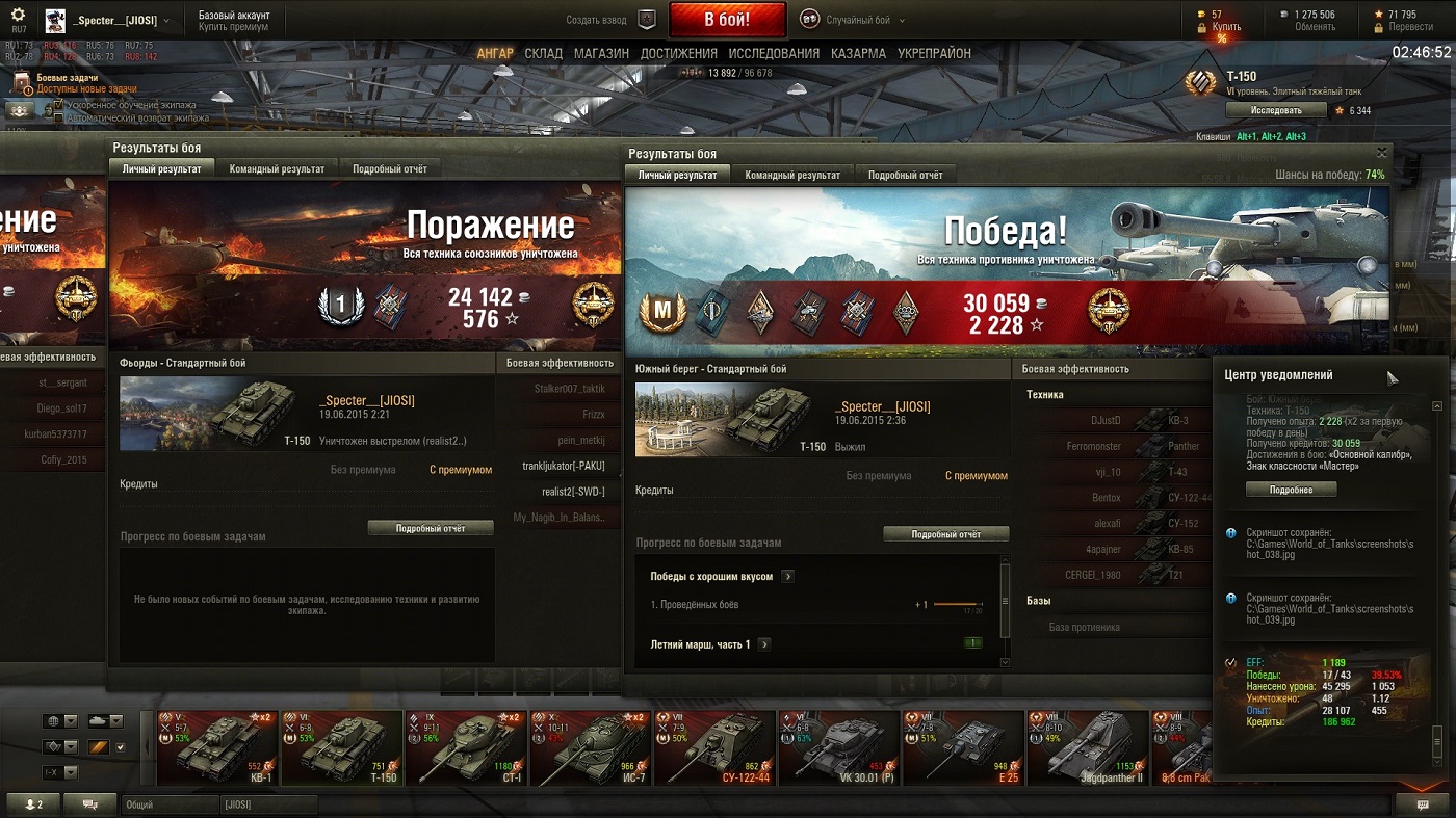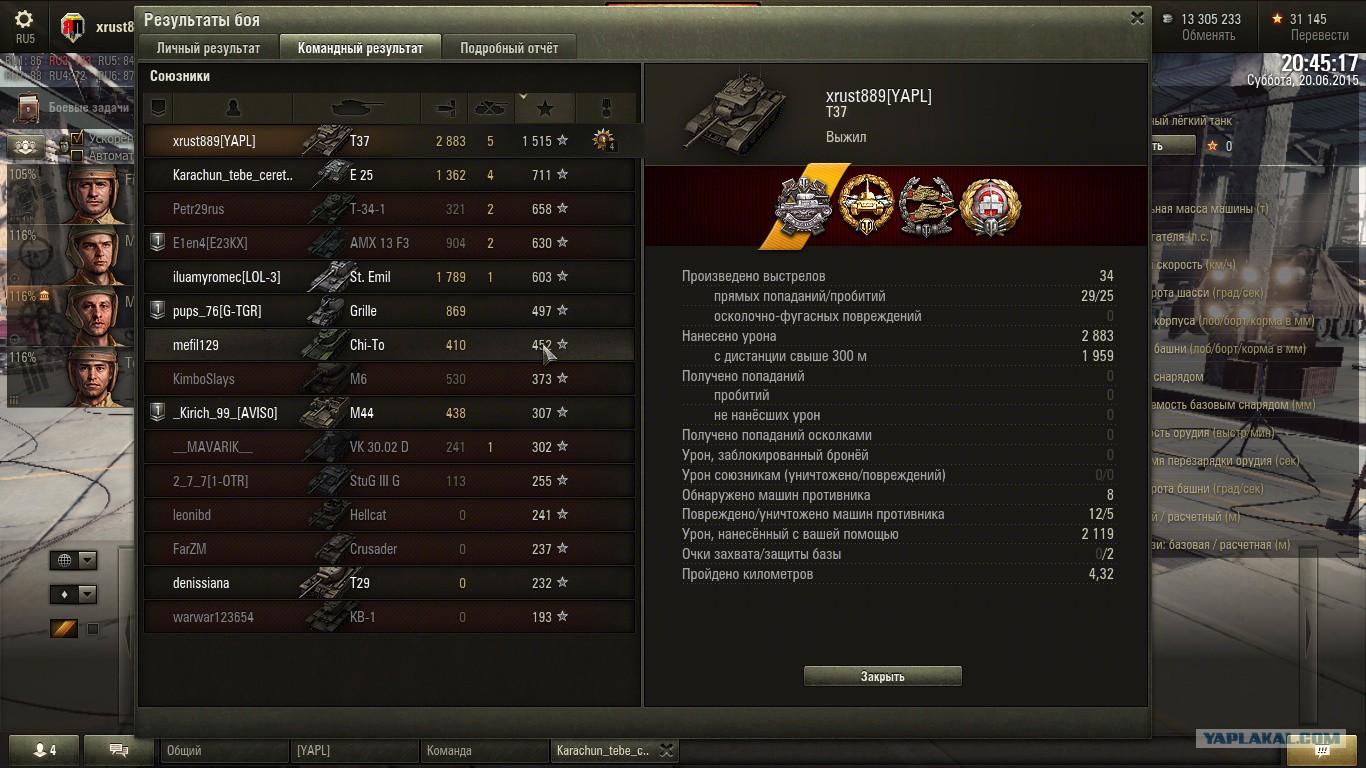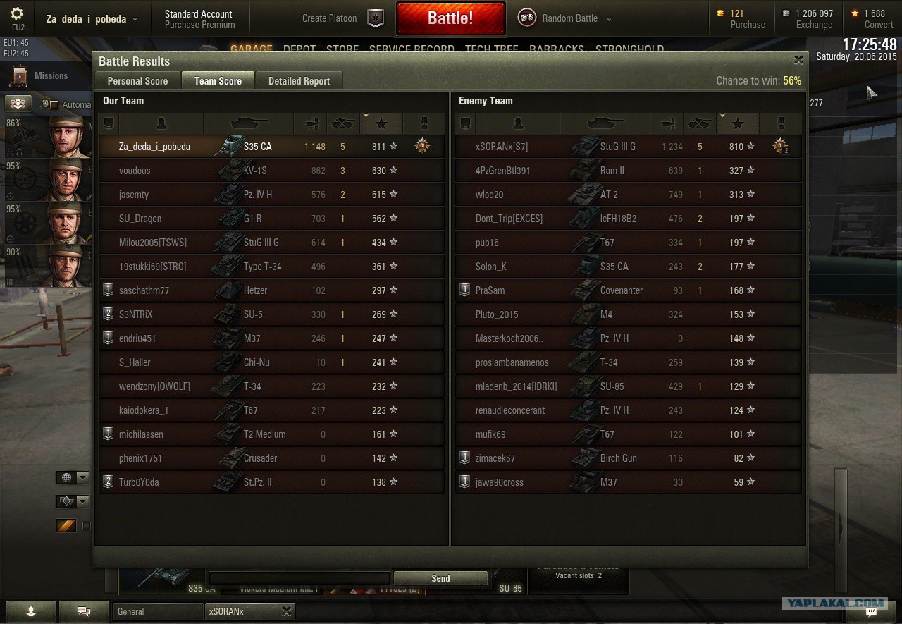 У меня уже слов нет. Засветил Т-62а, он вылез, я его на каток и барабан в борт, его убили. Потом КД, таракан вылезает бортом, я его на каток и барабан в борт. Результат