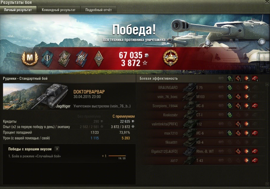 В три раза больше опыта за первую победу в день на всей технике, независимо от уровня, типа и нации.