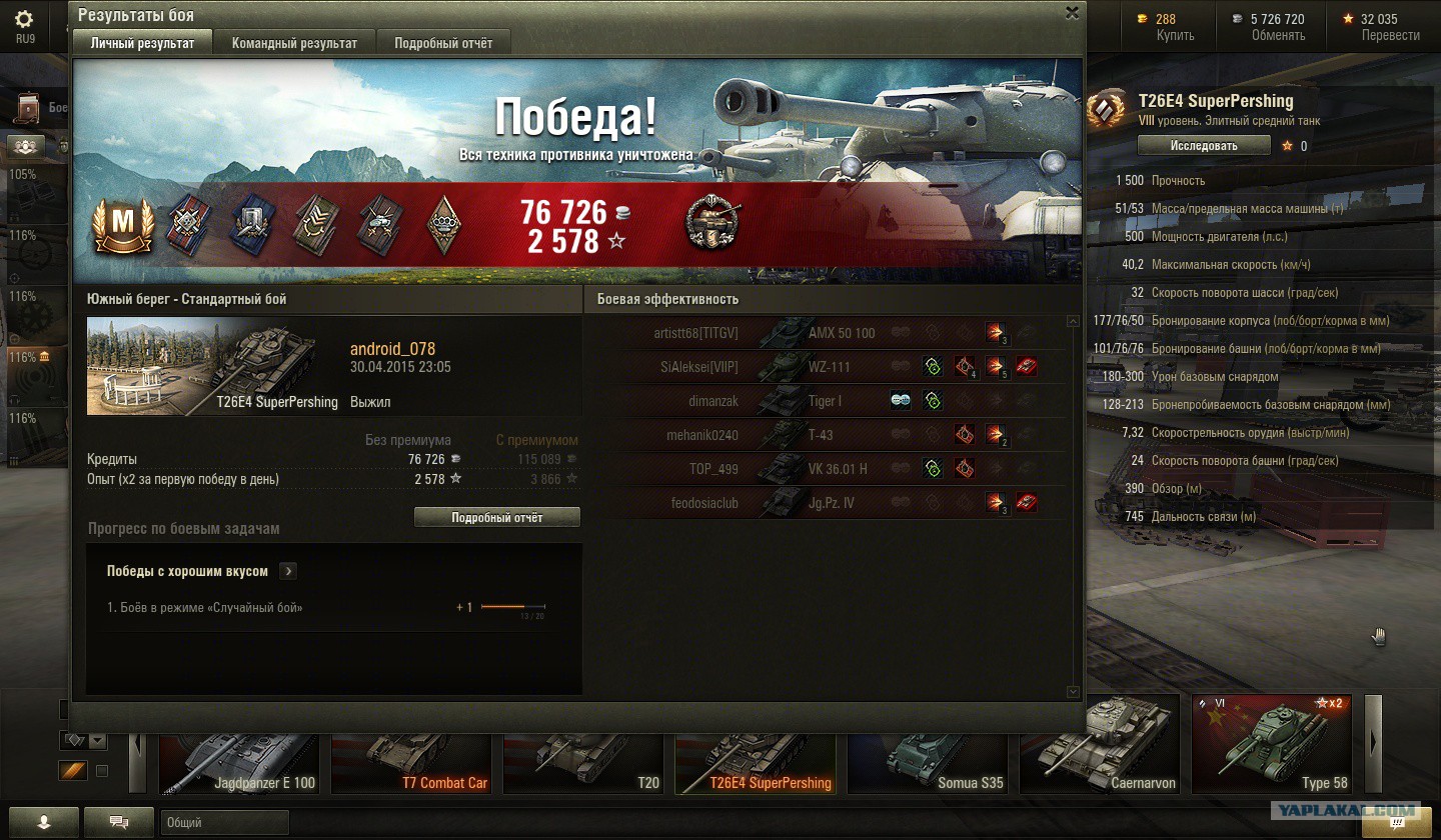 Сцук, как же иногда веселят такие товарищи)) В начале боя орал в чат, что всем пизд@, был очень агрессивный... В результате в самом начале боя был кем-то засвечен и и отправлен в ангар нашим Т92. Поток говна усилился. Вроде ведь зеленый, а мозгов не хватило, чтоб после засвета переехать