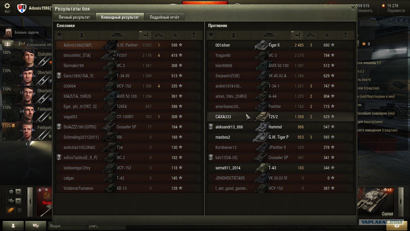 У противника последний в списке чувак с ником Win by damage слился с нулем.