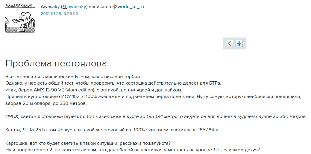Ну пиздит же, не спалит исуха без рогов девяностика с 350 метров. А куст на то и куст, чтоб маскировать, право первого выстрела у птбляди за кустом все же должно быть.